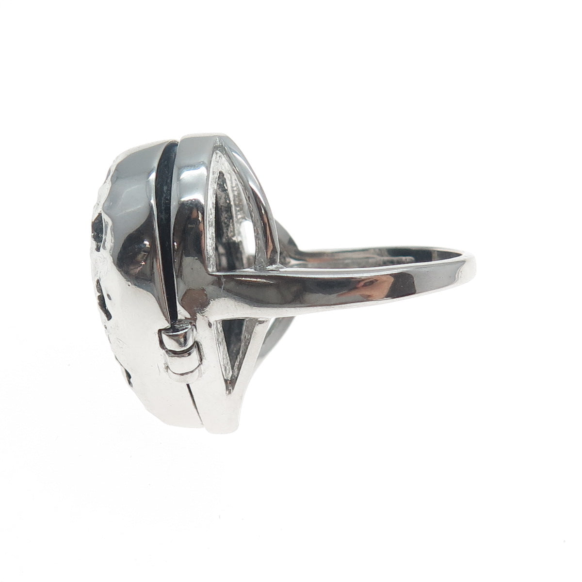 925 Sterling Silver Real Black Onyx Gem & C Z Heart Cutout Locket Ring Size 7