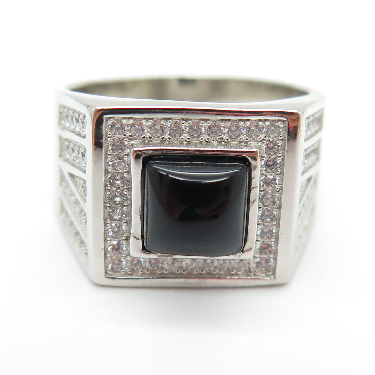 925 Sterling Silver Real Black Onyx & Round-Cut C Z Ring Size 9.25
