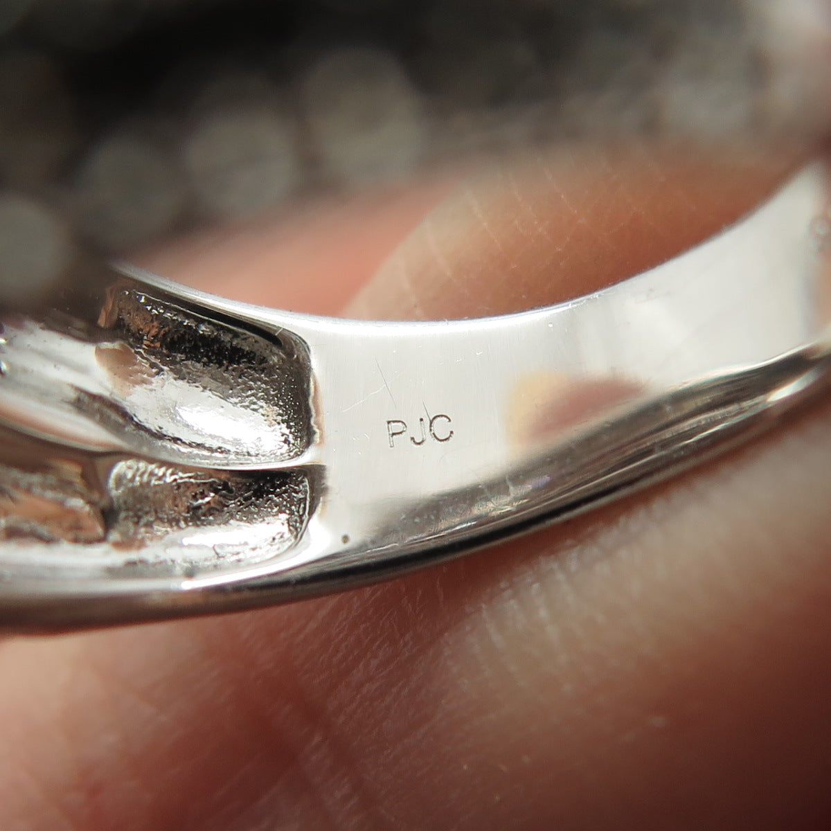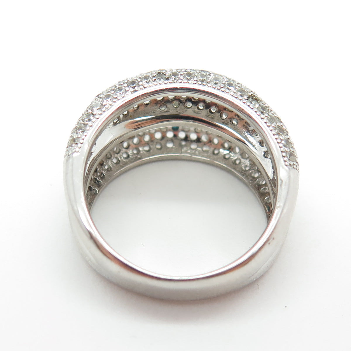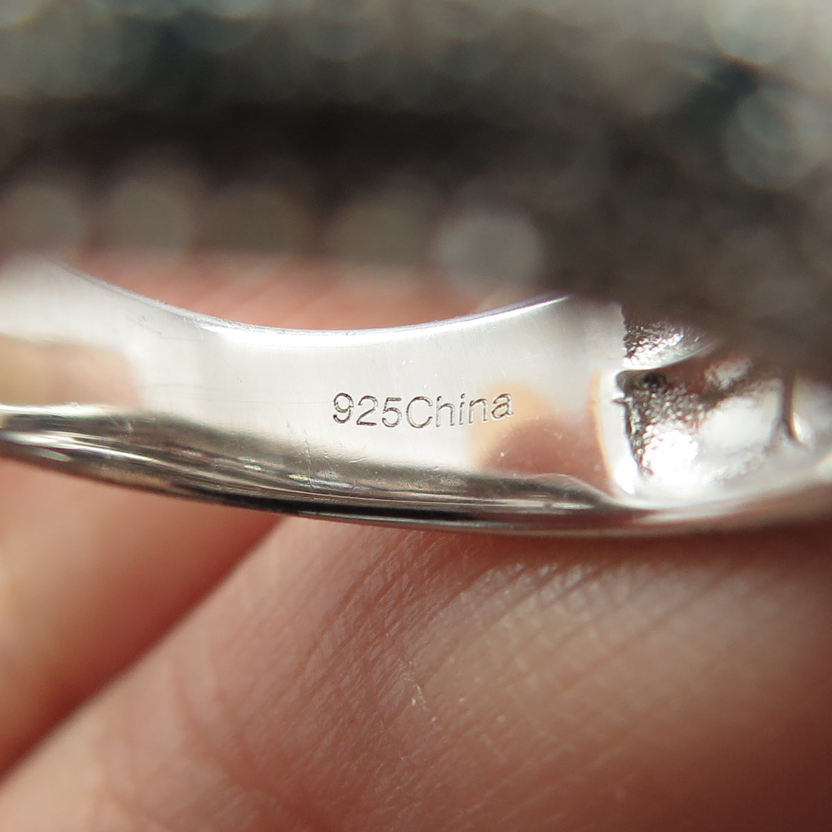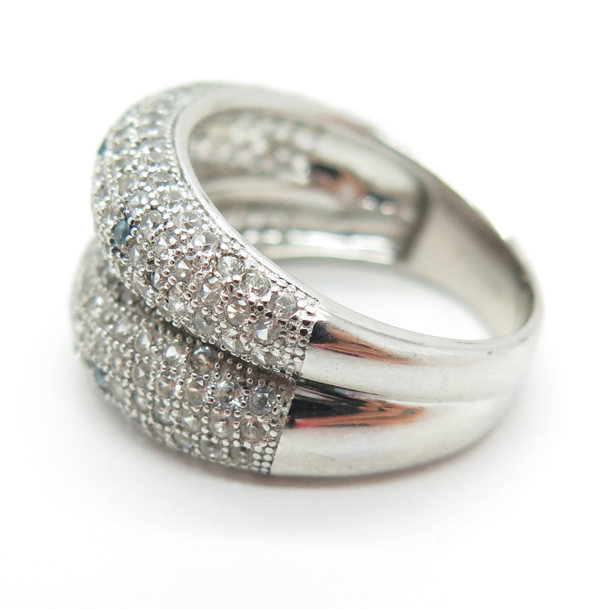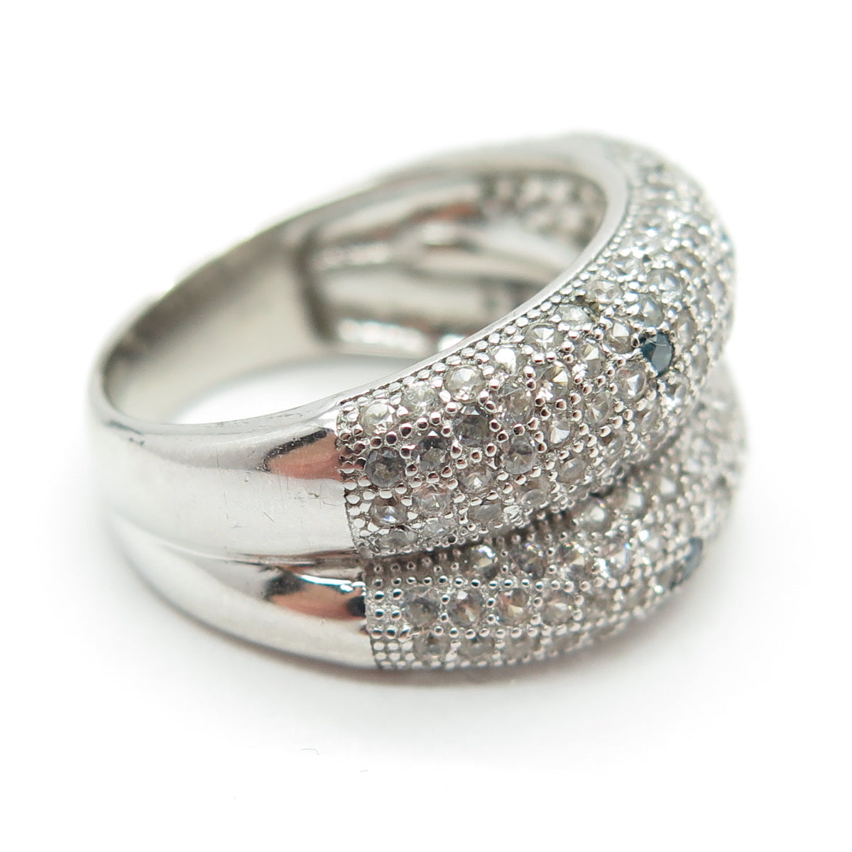 925 Sterling Silver Real Blue Diamond & White Topaz Gemstone Ring Size 7