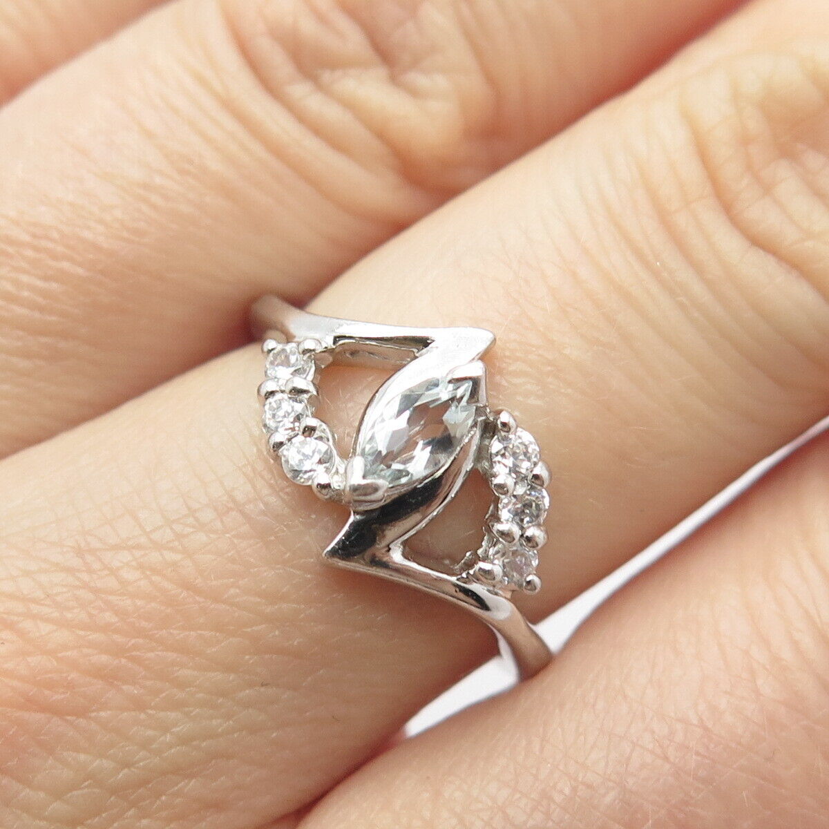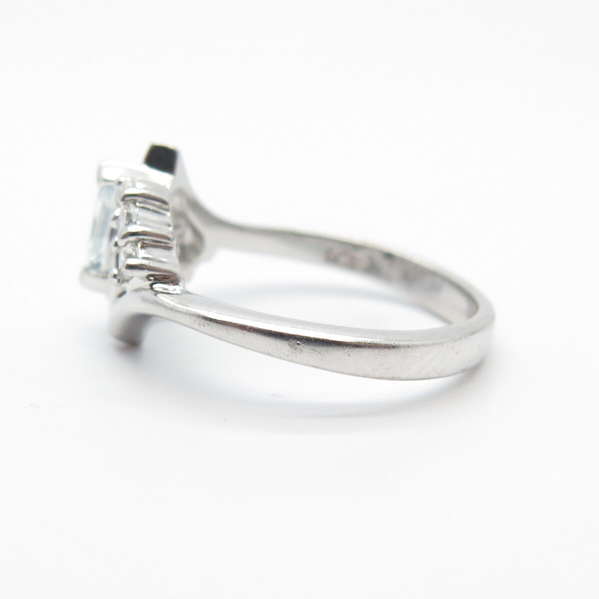925 Sterling Silver Real Blue Topaz Gemstone & C Z Ring Size 7.25