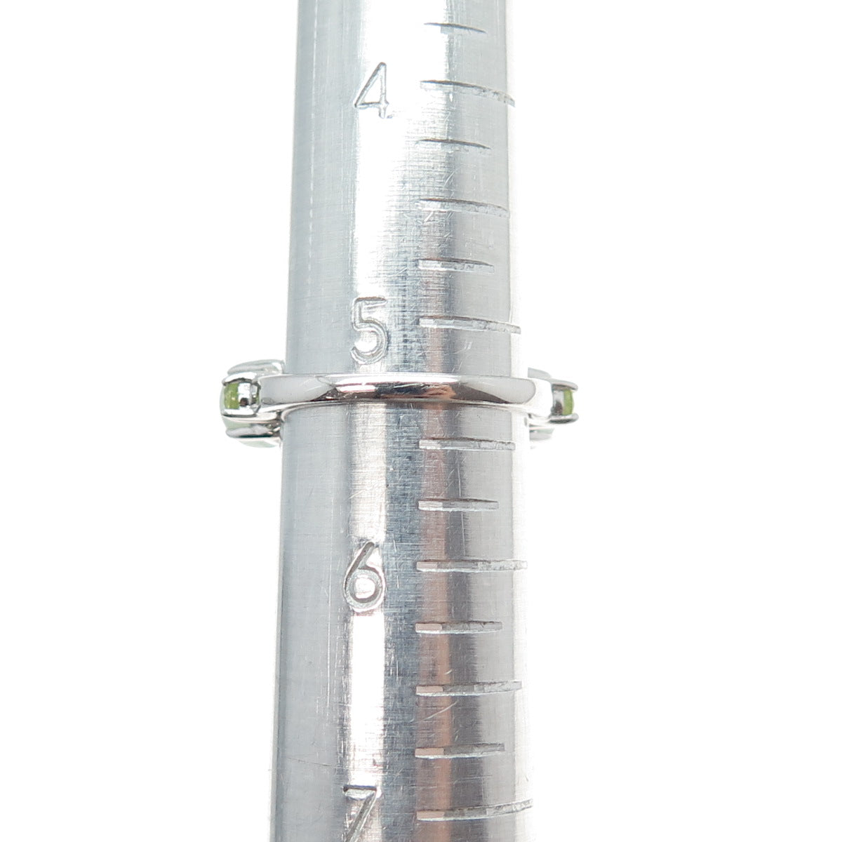 925 Sterling Silver Real Cabochon Jade & Round-Cut Peridot Ring Size 5.25