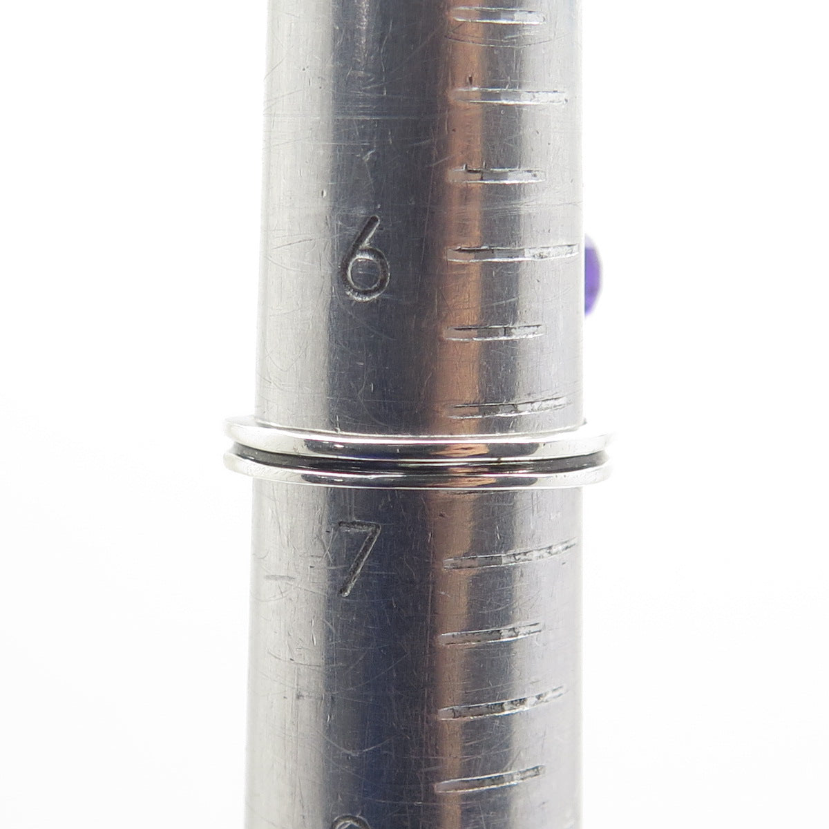 925 Sterling Silver Real Checkered Amethyst Gemstone Modernist Ring Size 6.75