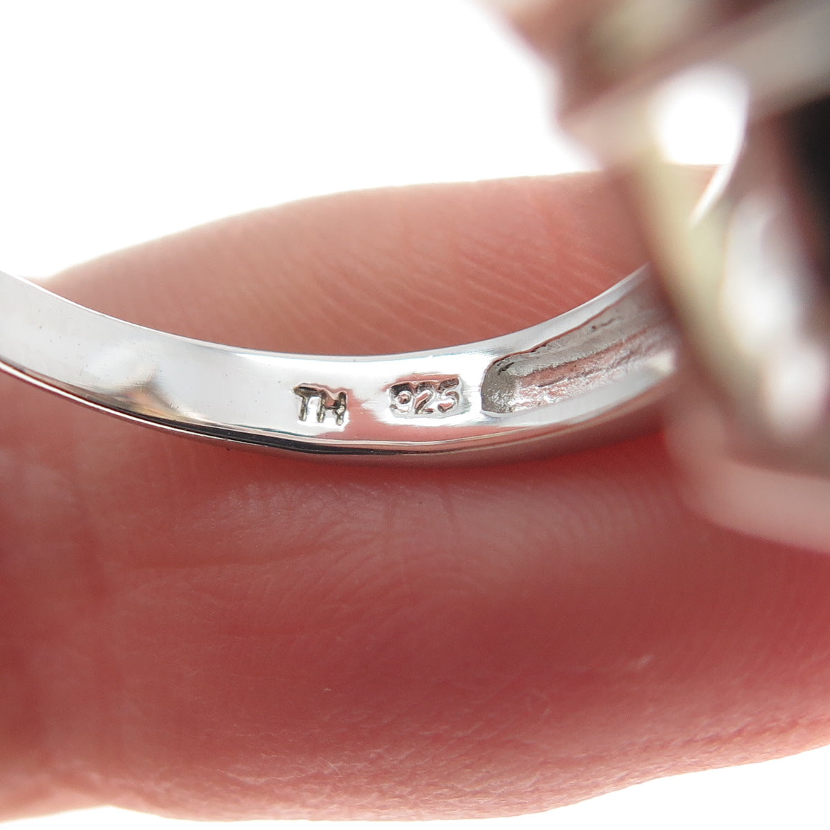 925 Sterling Silver Real Checkered Yellow & White Topaz Gem Ring Size 7.25
