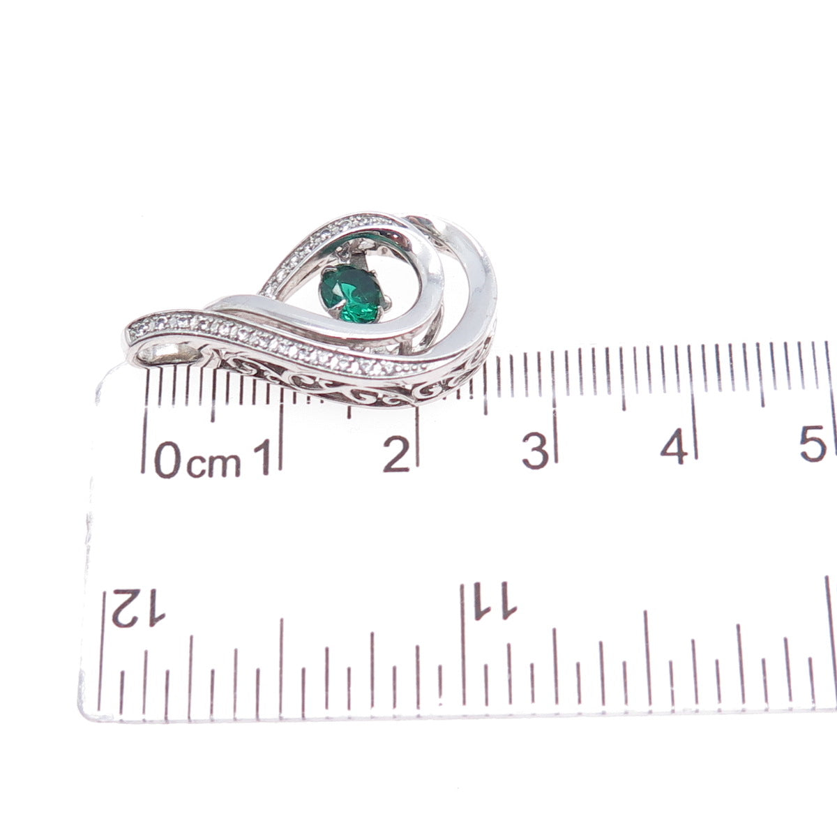 925 Sterling Silver Real Chrome Diopside & White Topaz Teardrop Slide Pendant