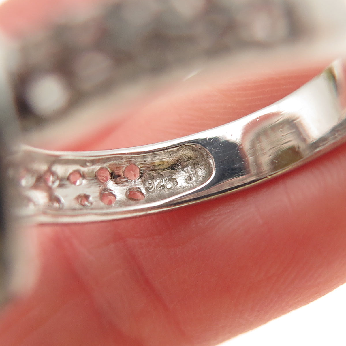 925 Sterling Silver Real Cushion & Round-Cut Peridot White Topaz Ring Size 7.25