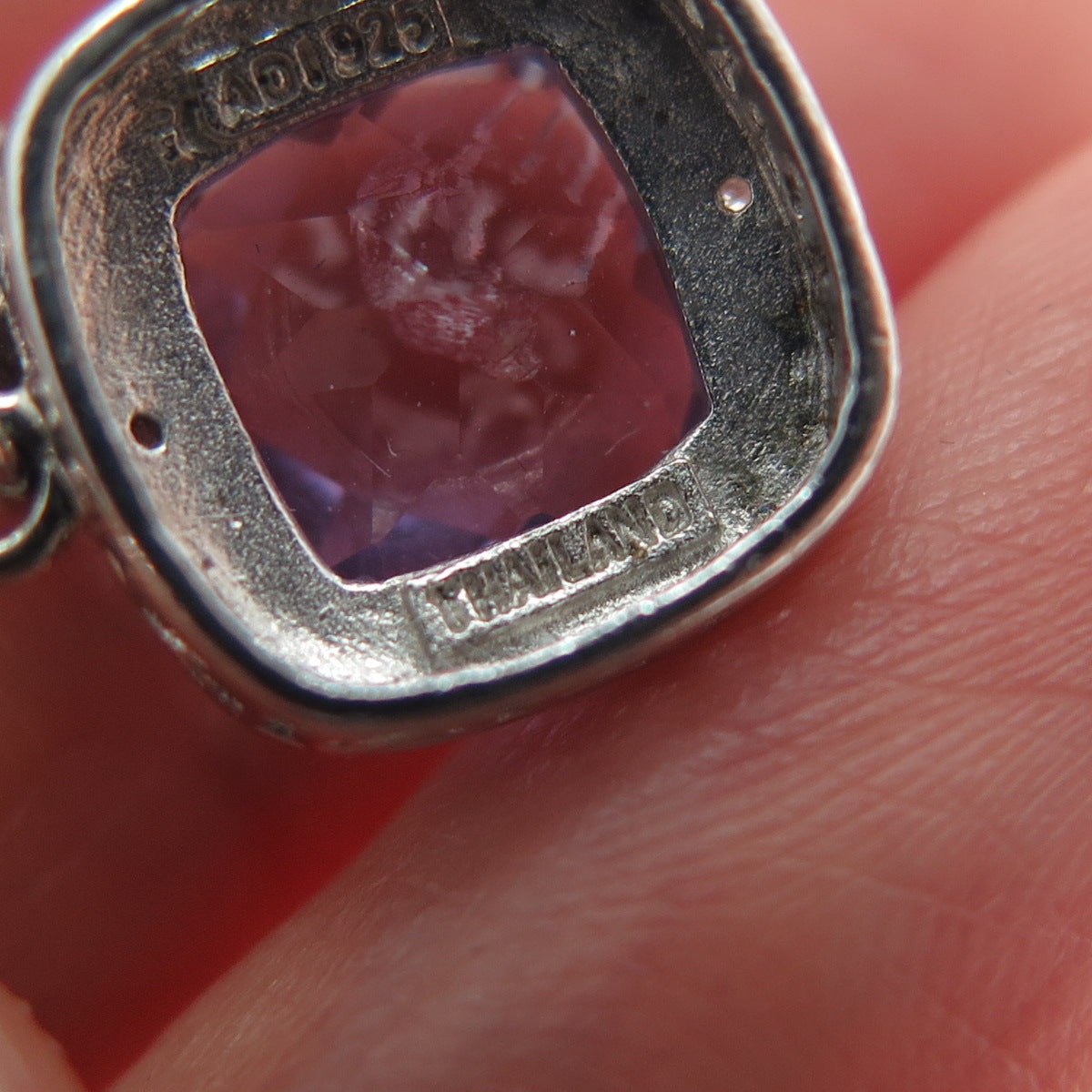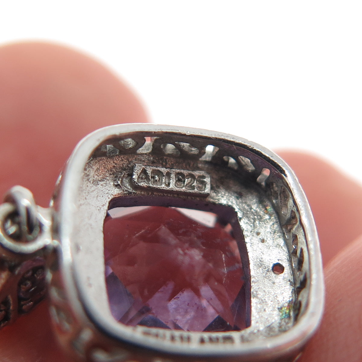 925 Sterling Silver Real Diamond Accent & Amethyst Dangle Earrings