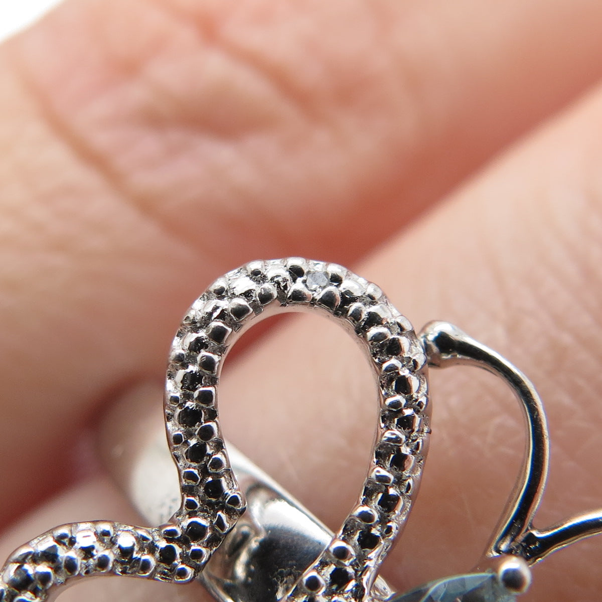 925 Sterling Silver Real Diamond Accent & Blue Topaz Butterfly Ring Size 7.75