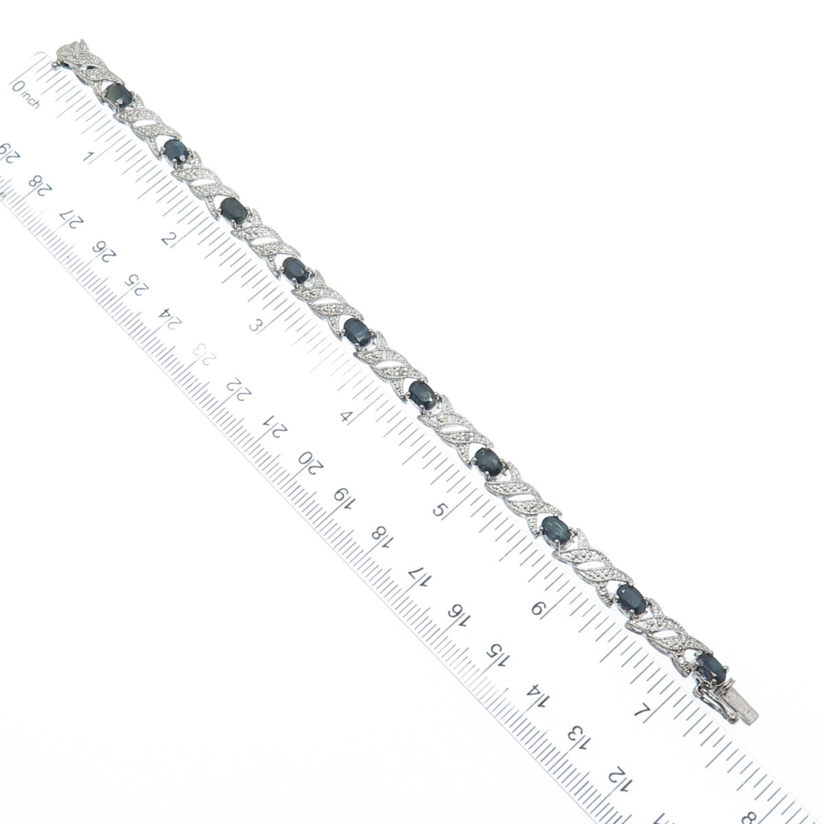 925 Sterling Silver Real Diamond Accent & Sapphire Gem XO Link Bracelet 7"
