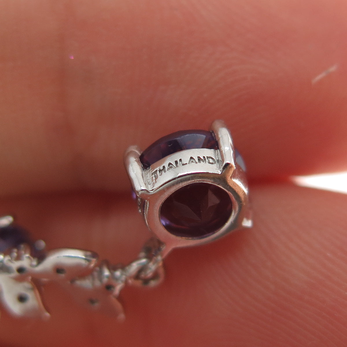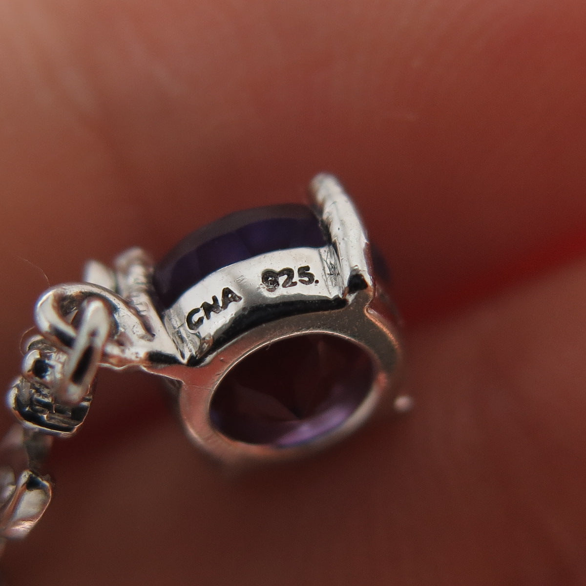 925 Sterling Silver Real Diamond & Amethyst Floral Leaf Dangle Earrings