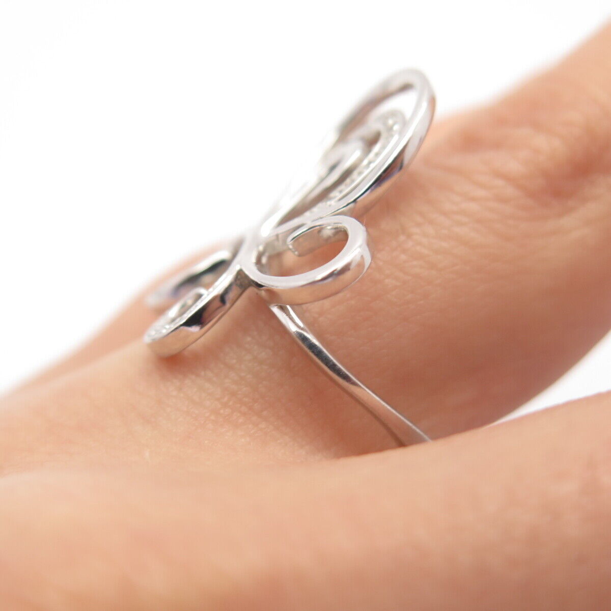 925 Sterling Silver Real Diamond Modernist Butterfly Ring Size 7
