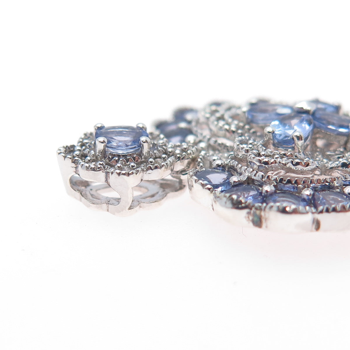 925 Sterling Silver Real Diamond & Tanzanite Heart Cluster Slide Charm Pendant