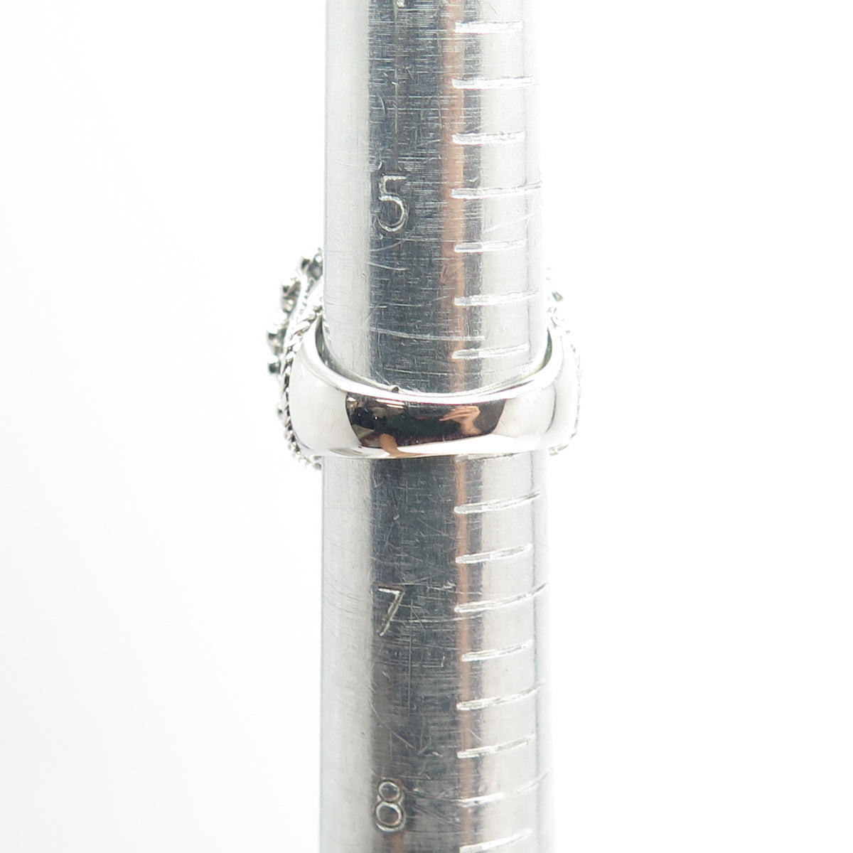925 Sterling Silver Real Doublet Abalone Shell Floral Wide Ring Size 6.25