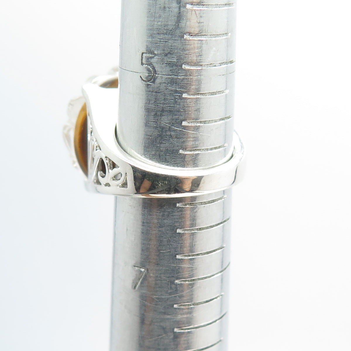925 Sterling Silver Real Doublet Tiger Eye Gemstone Ring Size 6.25