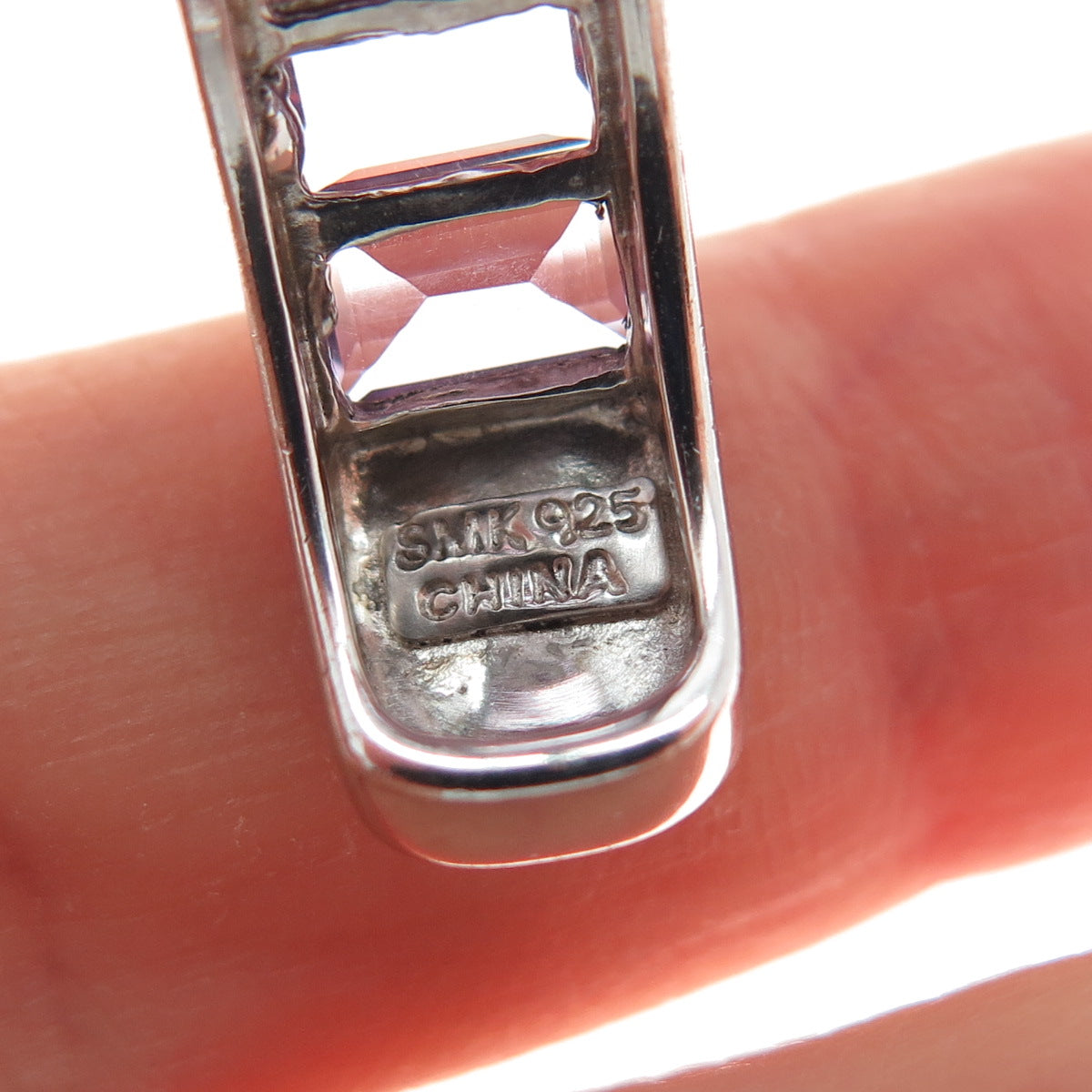 925 Sterling Silver Real Emerald-Cut Amethyst Half Hoop Earrings