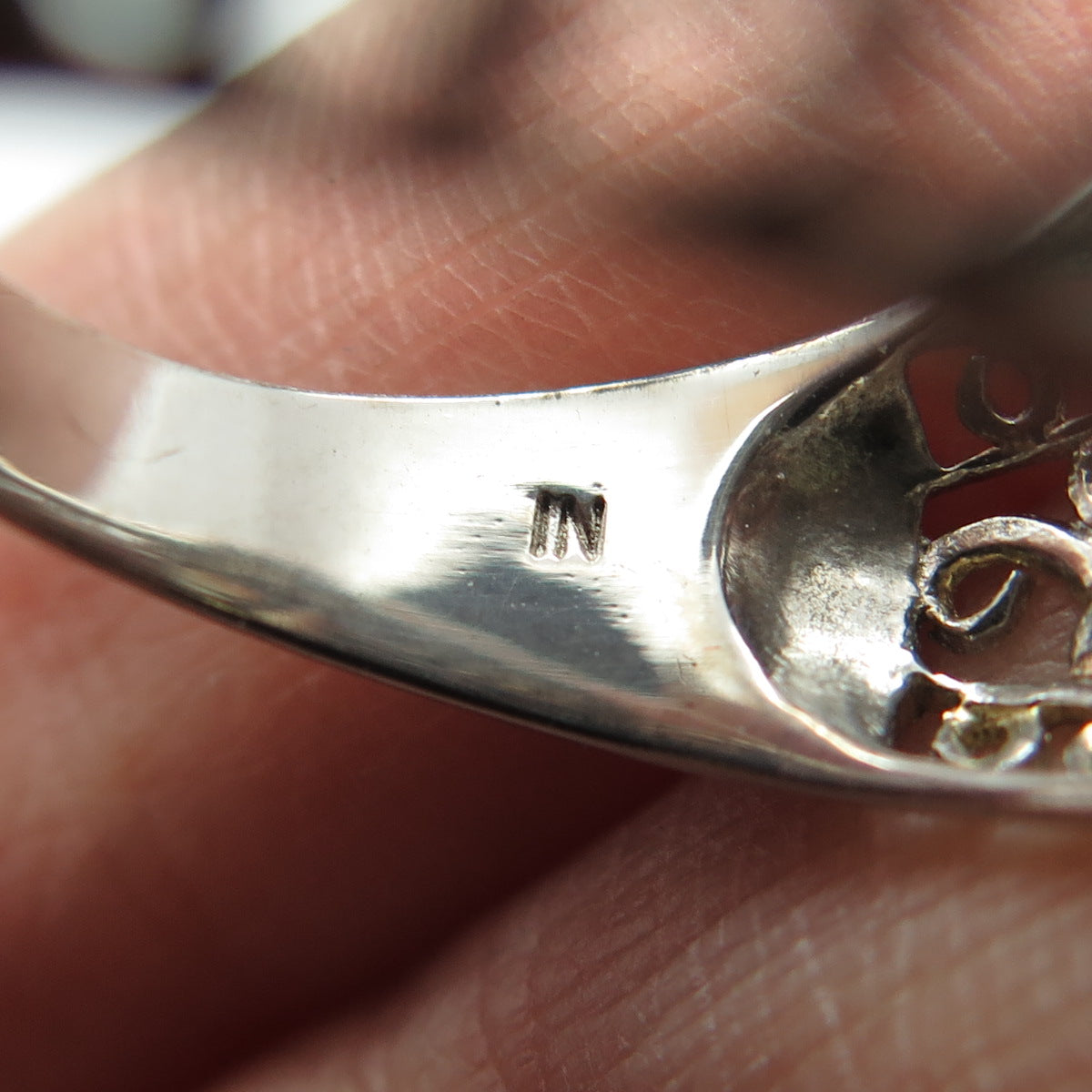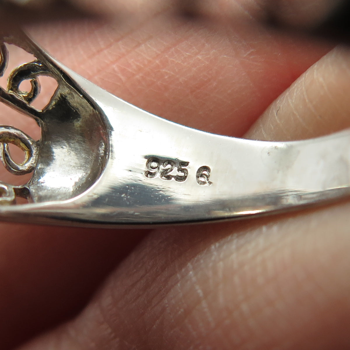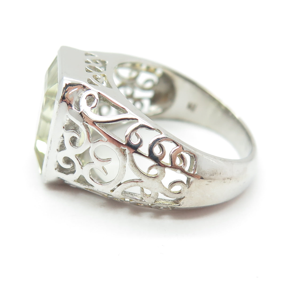 925 Sterling Silver Real Emerald-Cut Lime Citrine Swirl Ring Size 8.25
