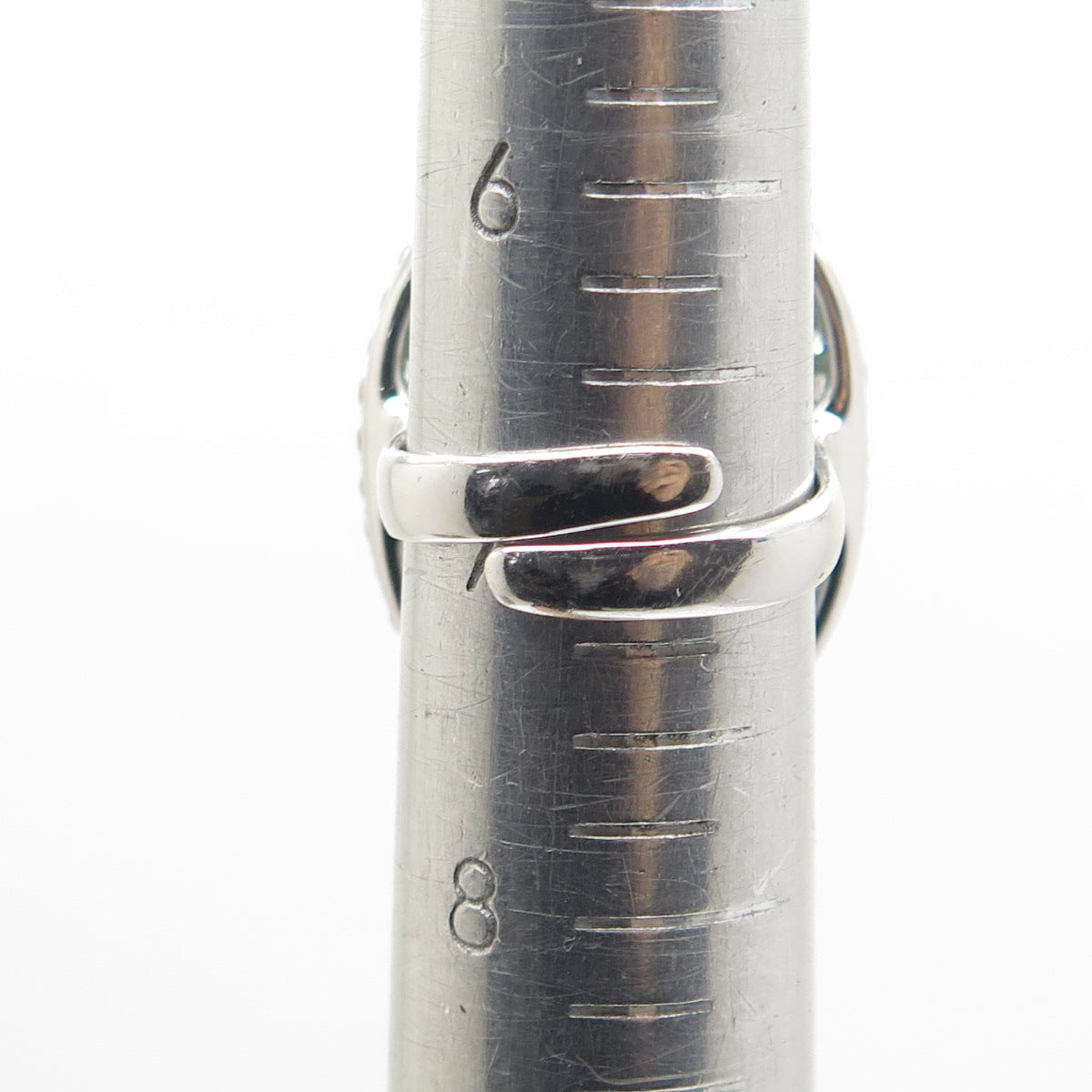 925 Sterling Silver Real Green Onyx & White Topaz Gem Adjustable Ring Size 7.25