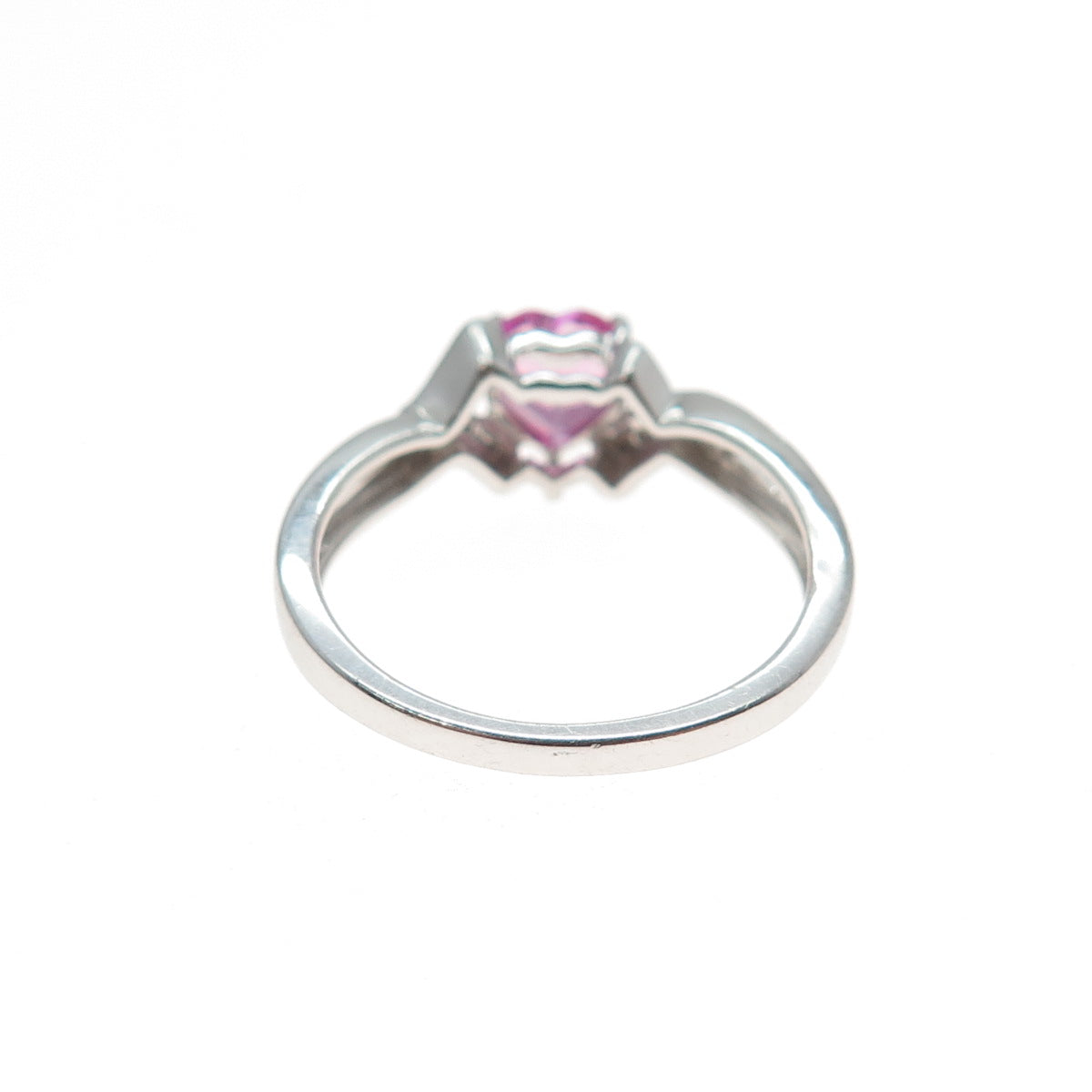 925 Sterling Silver Real Heart-Cut Pink Topaz & C Z Ring Size 7
