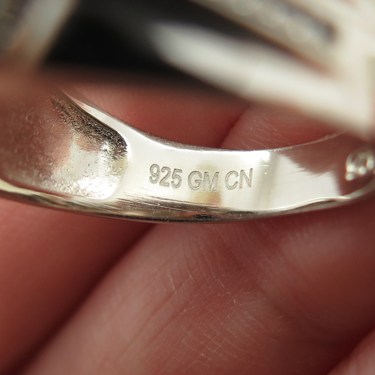 925 Sterling Silver Real Hematite & Round-Cut C Z Ring Size 8.25