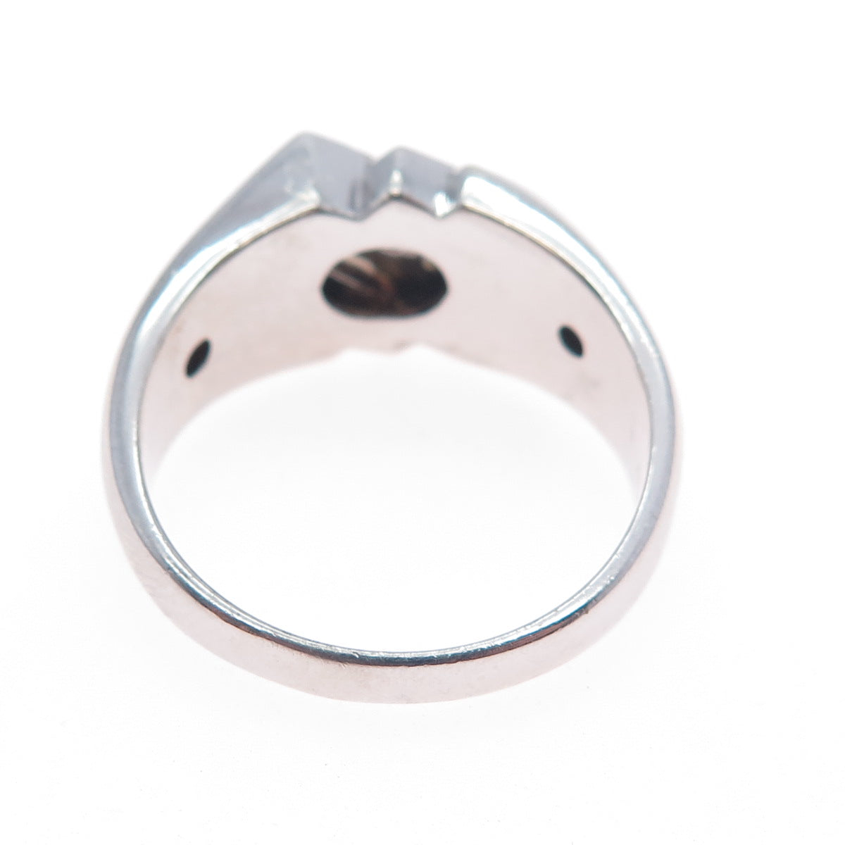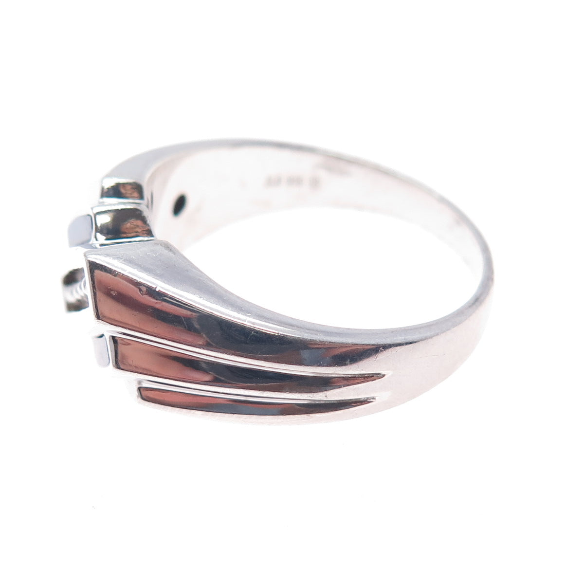 925 Sterling Silver Real Lapis Lazuli & White Topaz Modernist Ring Size 12.25