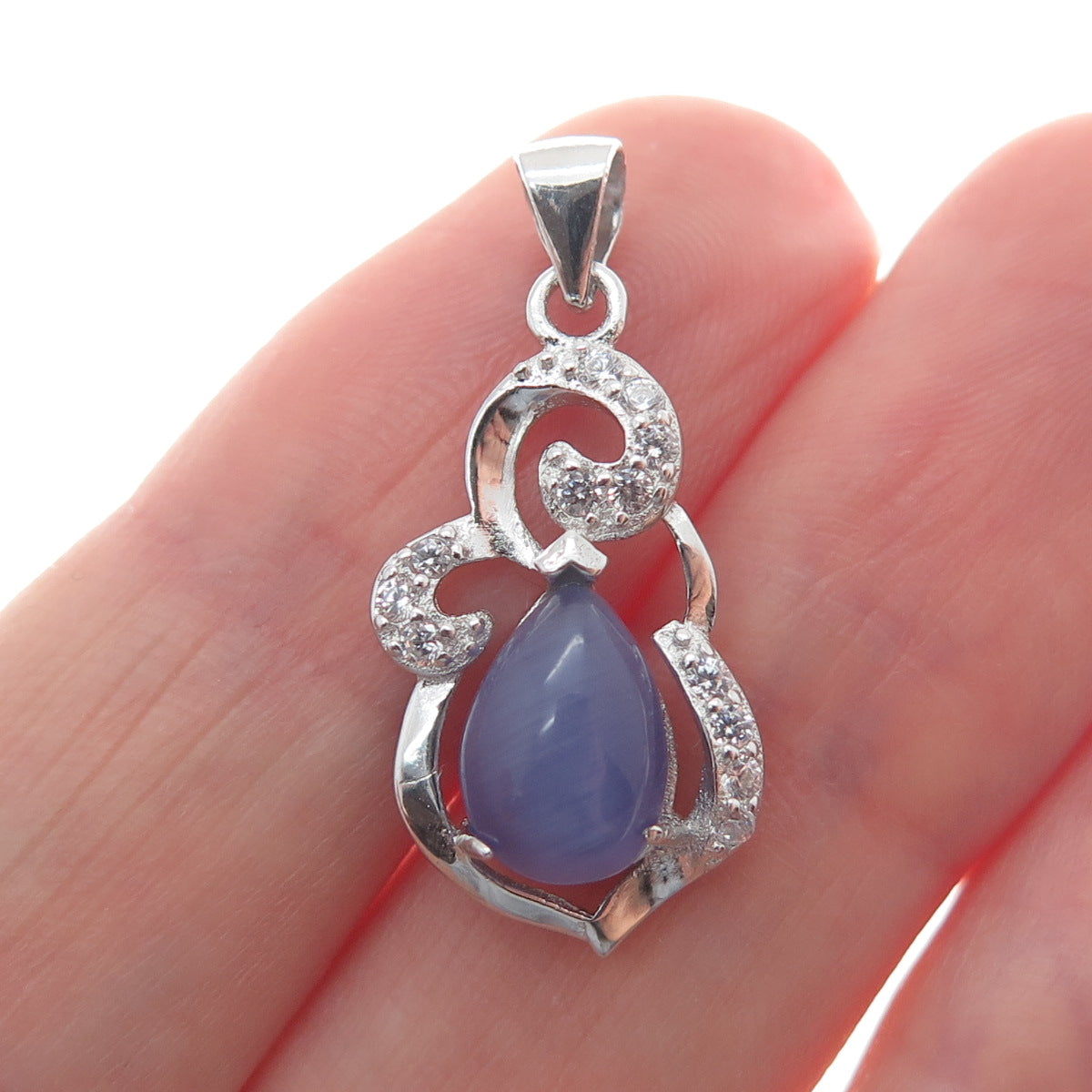 925 Sterling Silver Real Lavender Jade & C Z Minimalist Charm Pendant