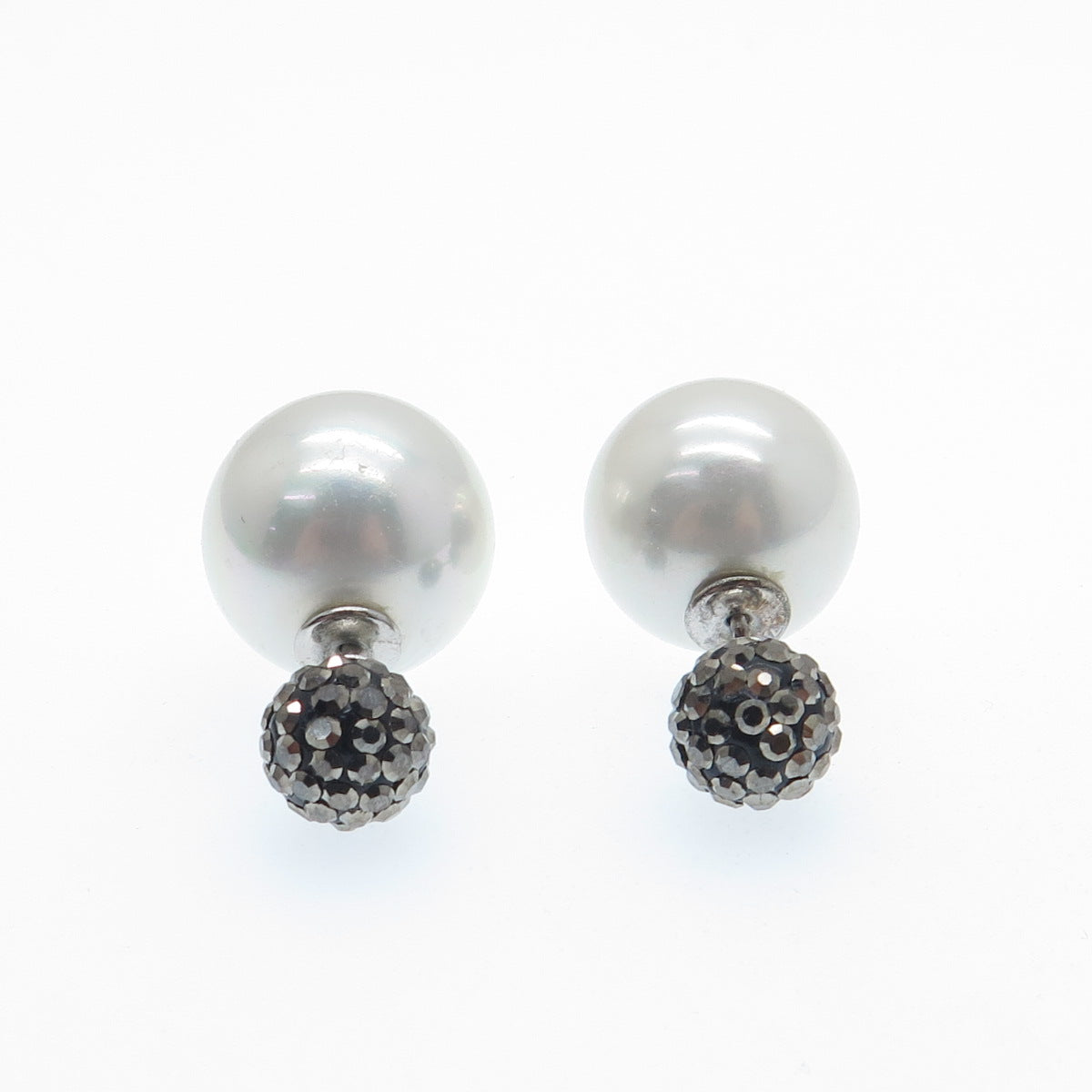 925 Sterling Silver Real Marcasite & Faux Pearl 10mm Double Sided Stud Earrings