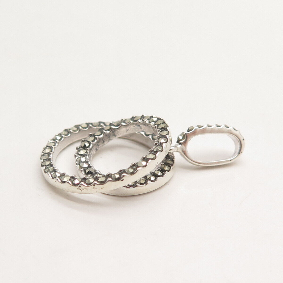 925 Sterling Silver Real Marcasite Gem Double Circle Pendant