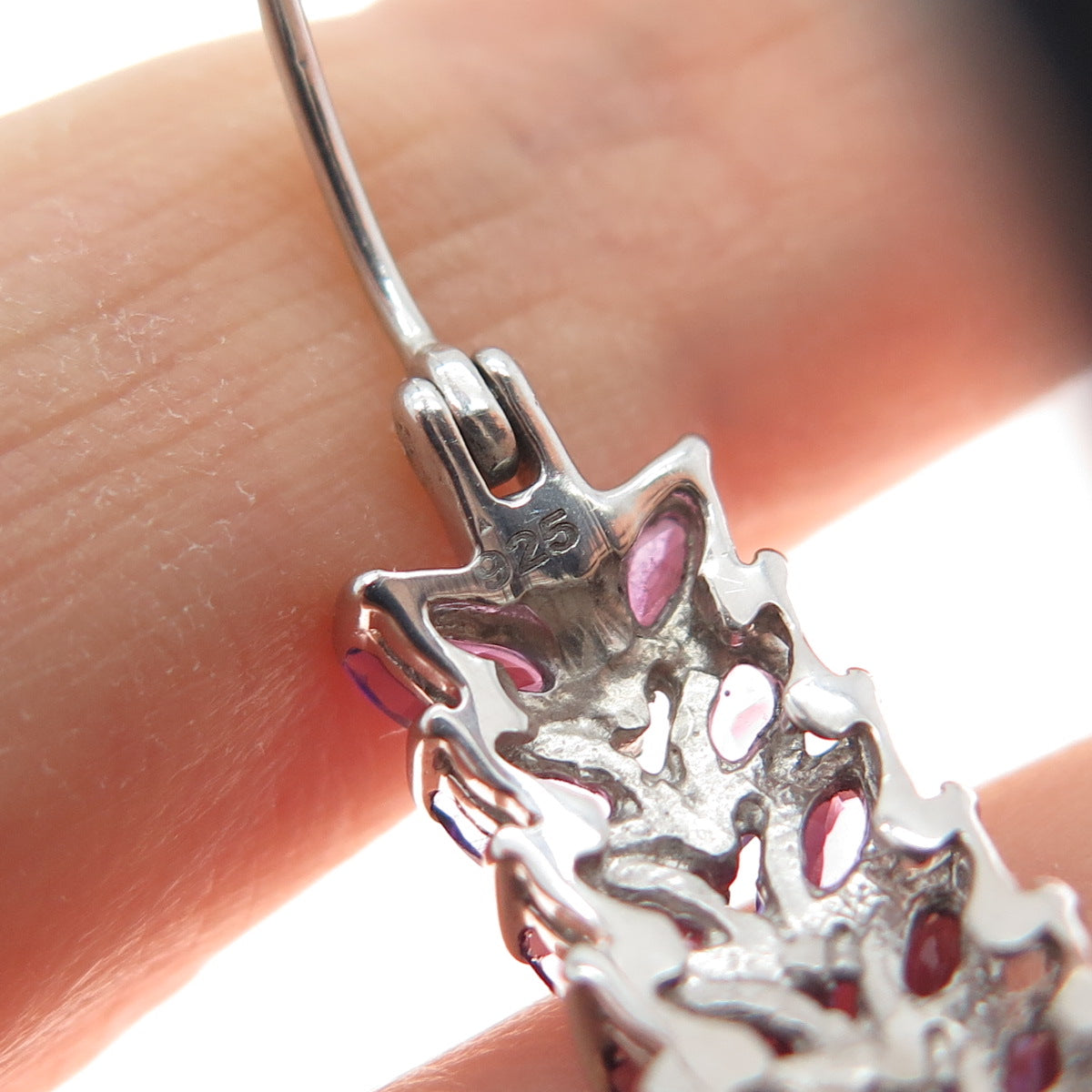 925 Sterling Silver Real Marquise-Cut Amethyst Laurel Hoop Earrings