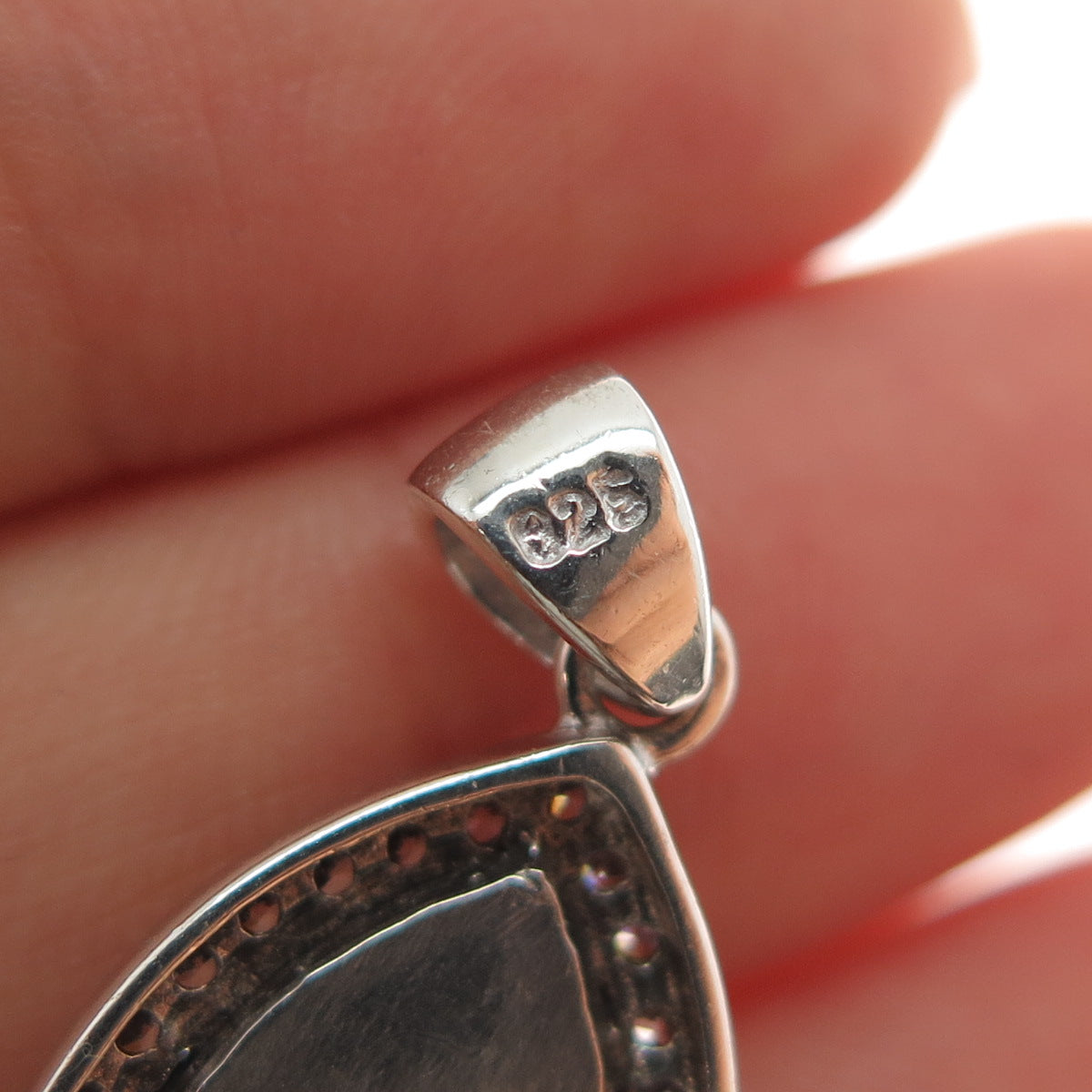 925 Sterling Silver Real Marquise-Cut Black Spinel & C Z Charm Pendant