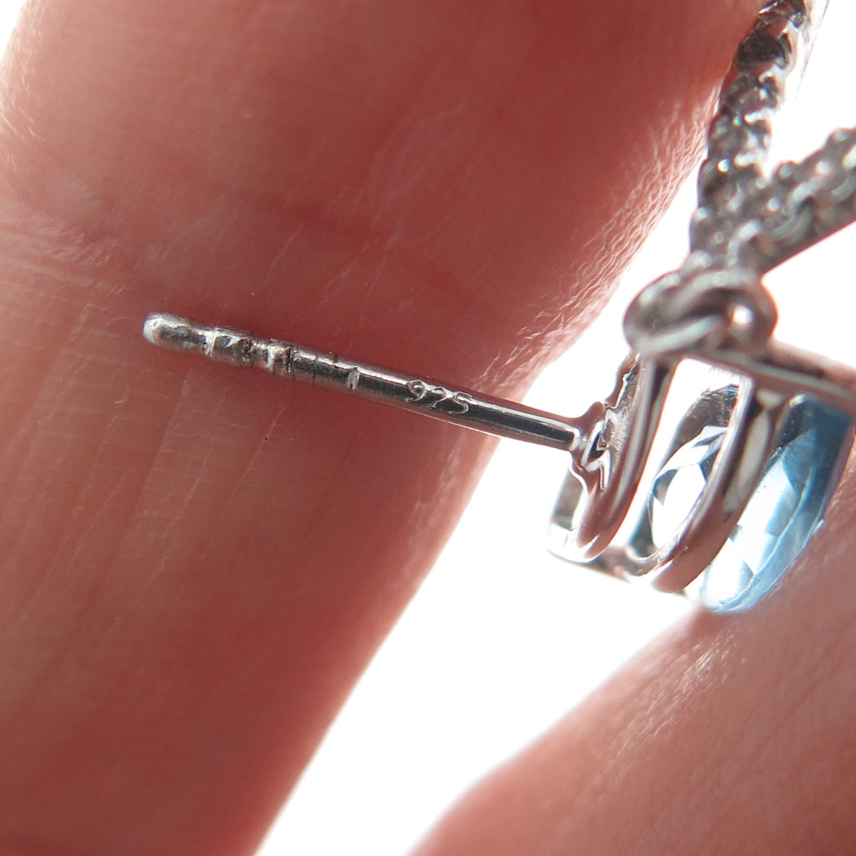 925 Sterling Silver Real Marquise-Cut Blue Round-Cut White Topaz Dangle Earrings