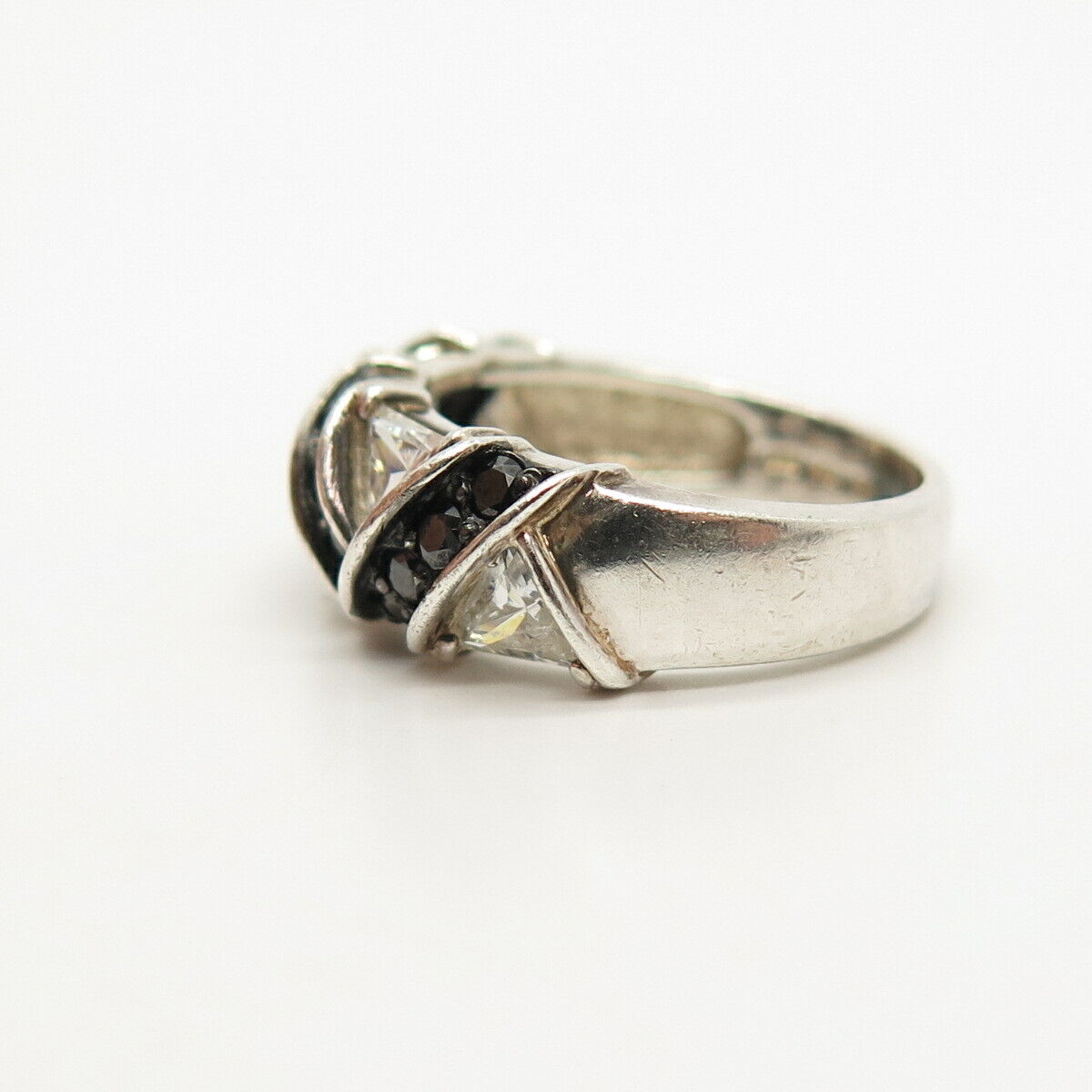 925 Sterling Silver Real Melanite Gem & C Z Ring Size 5