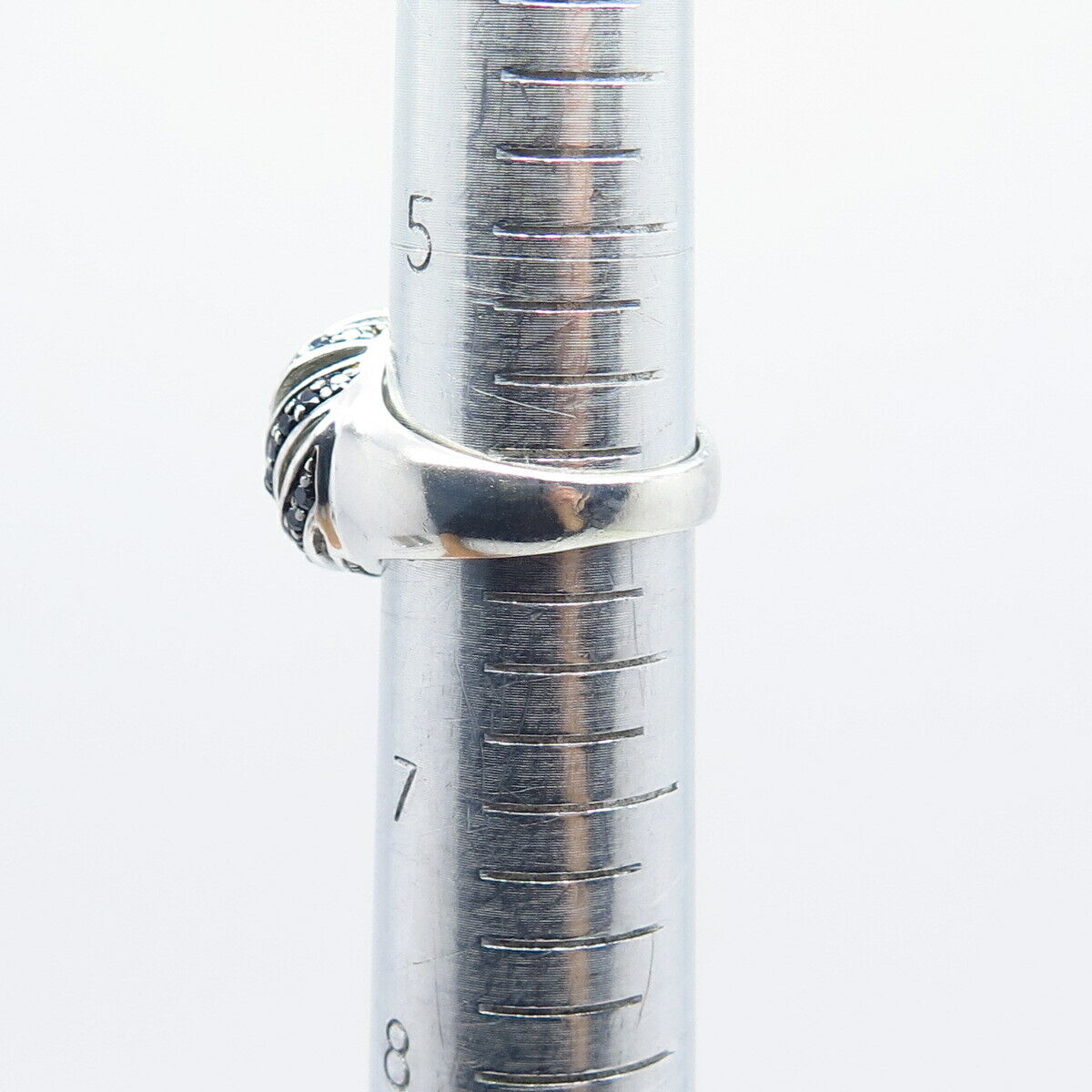 925 Sterling Silver Real Melanite Gem & C Z Swirl Domed Ring Size 6