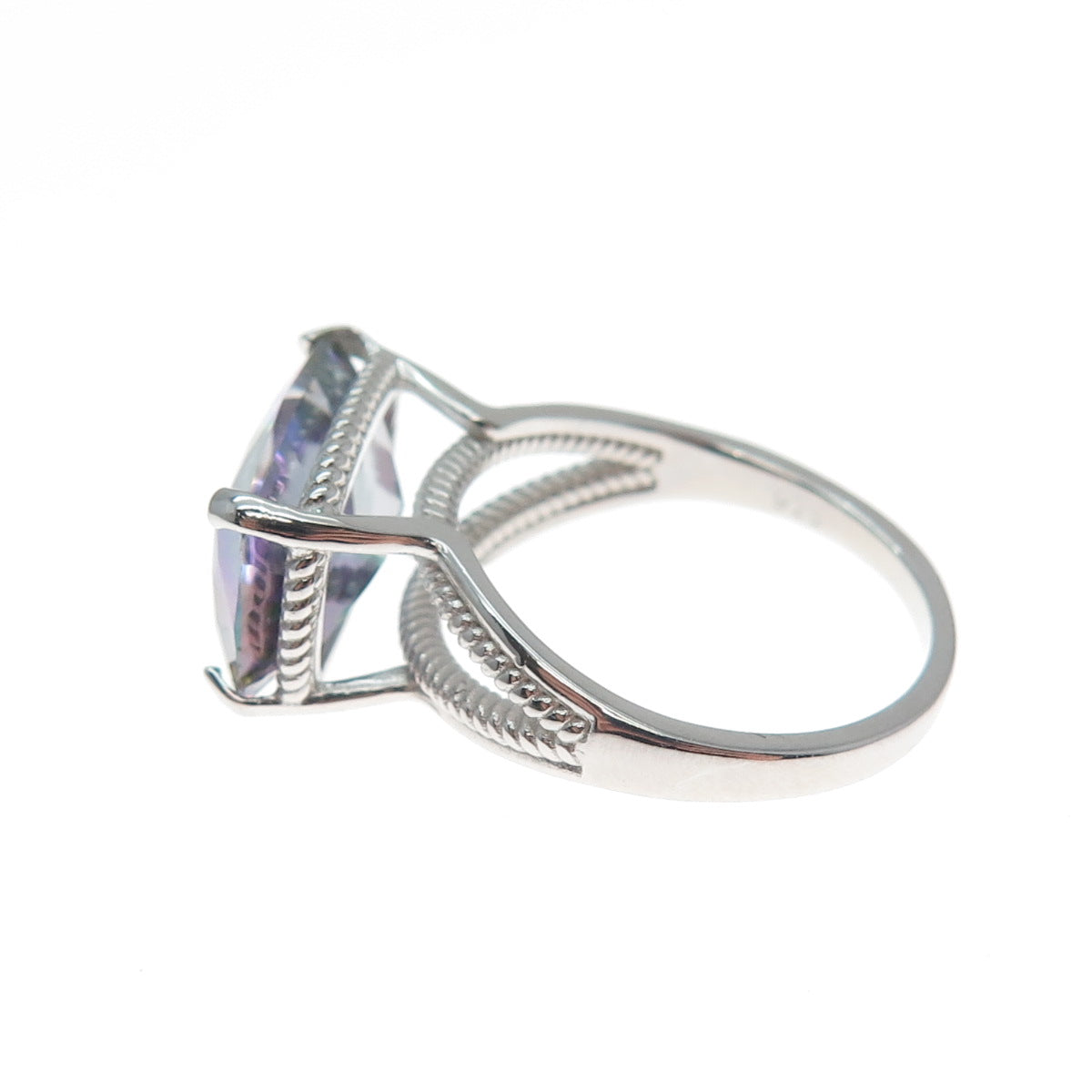 925 Sterling Silver Real Mystic Quartz Roped Bezel Ring Size 7.25