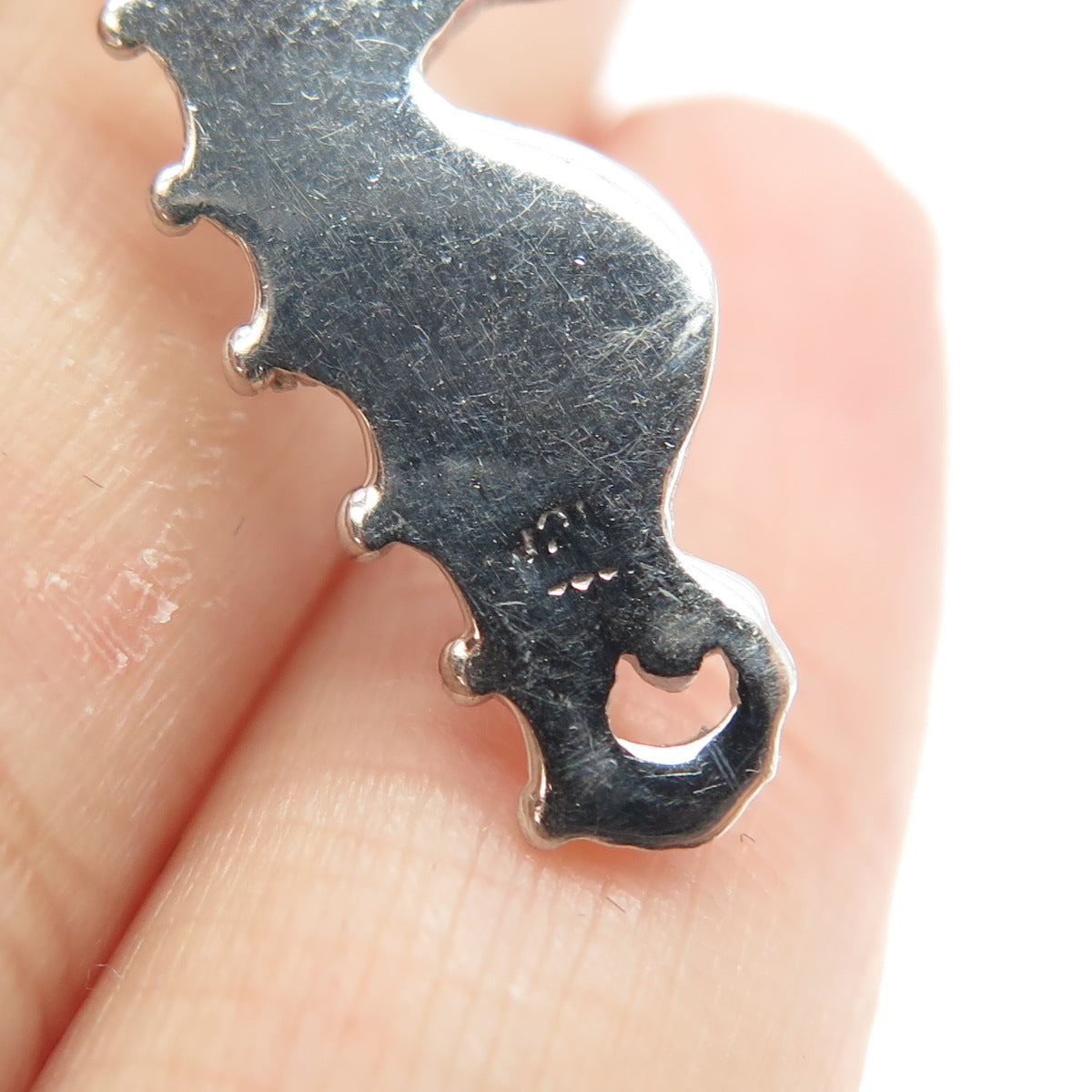 925 Sterling Silver Real Opal & C Z Seahorse Dangling Earrings