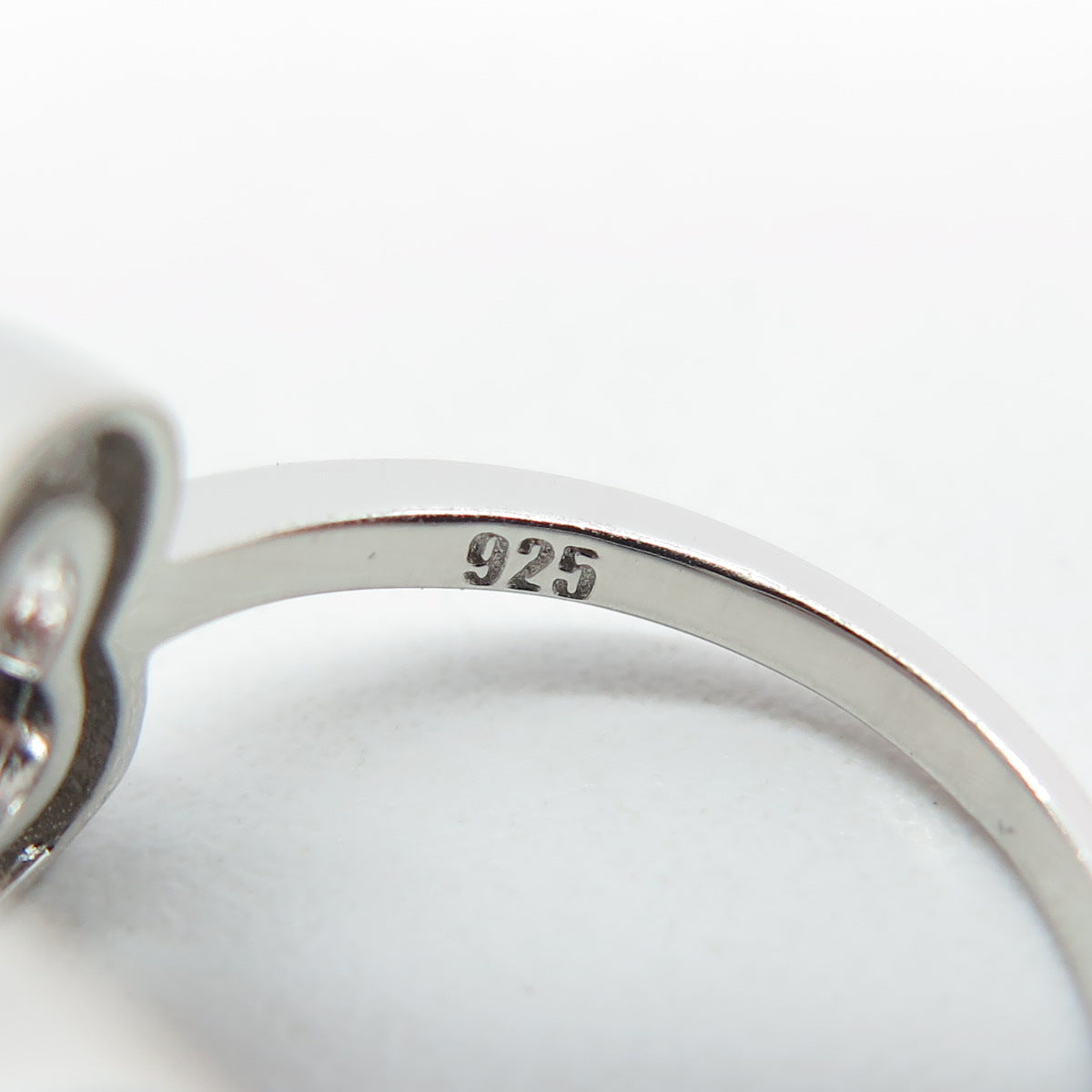 925 Sterling Silver Real Opal & Round-Cut C Z Infinity Heart Ring Size 5