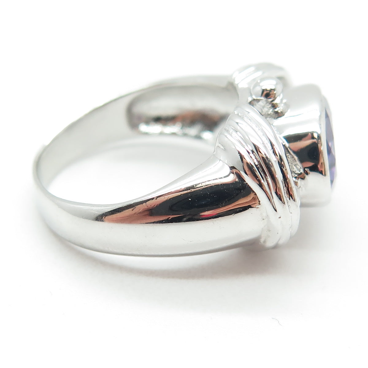 925 Sterling Silver Real Oval-Cut Amethyst Modernist Ring Size 7.75