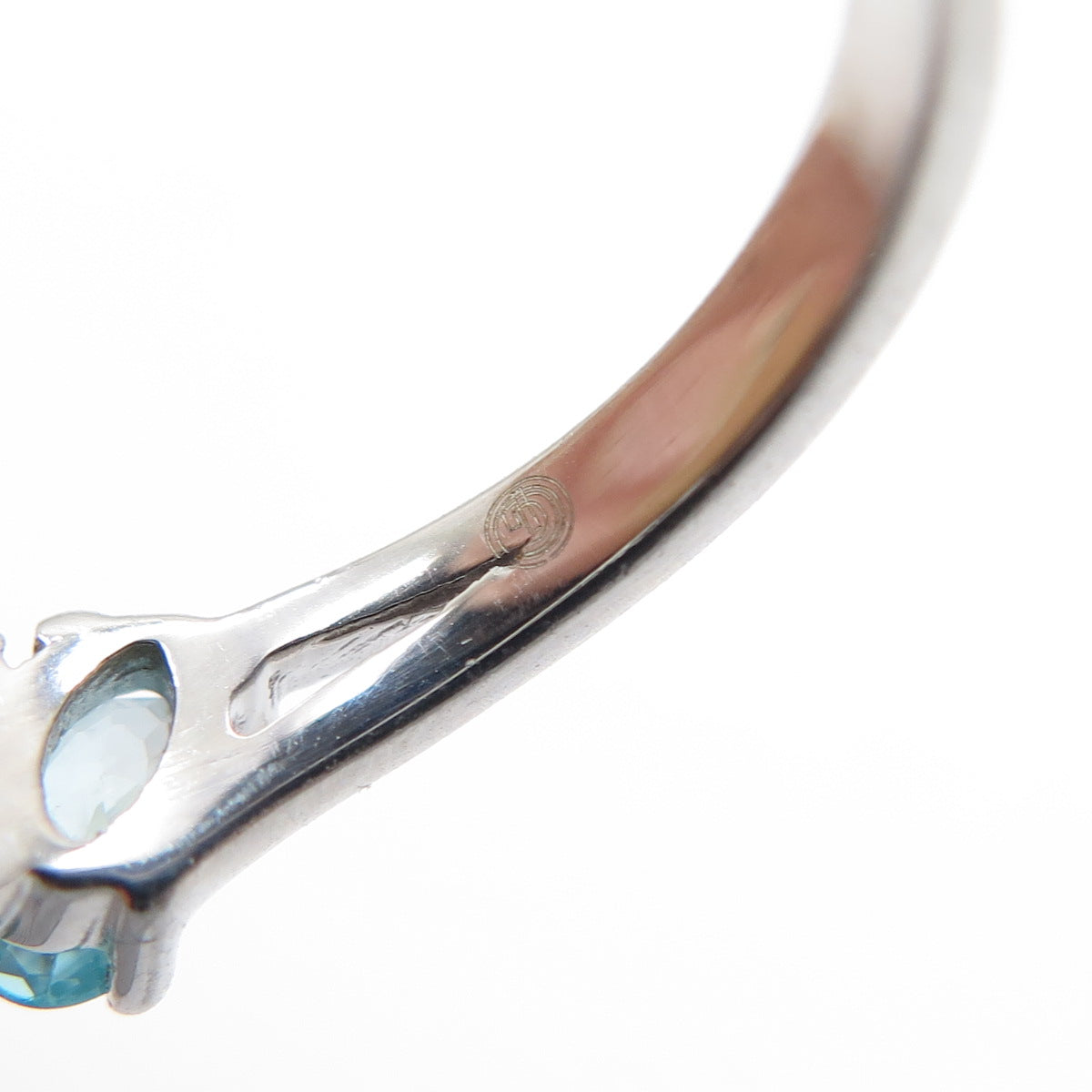 925 Sterling Silver Real Oval-Cut Blue & Round-Cut White Topaz Ring Size 6.25
