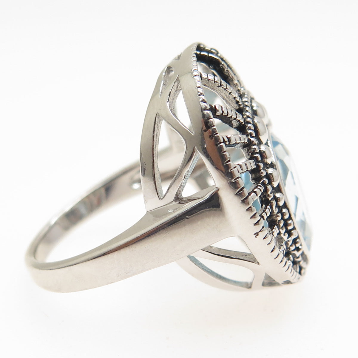 925 Sterling Silver Real Oval-Cut Blue Topaz Sunrise Oxidized Ring Size 7