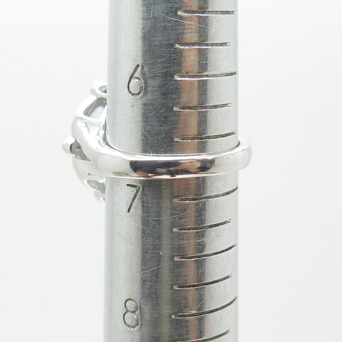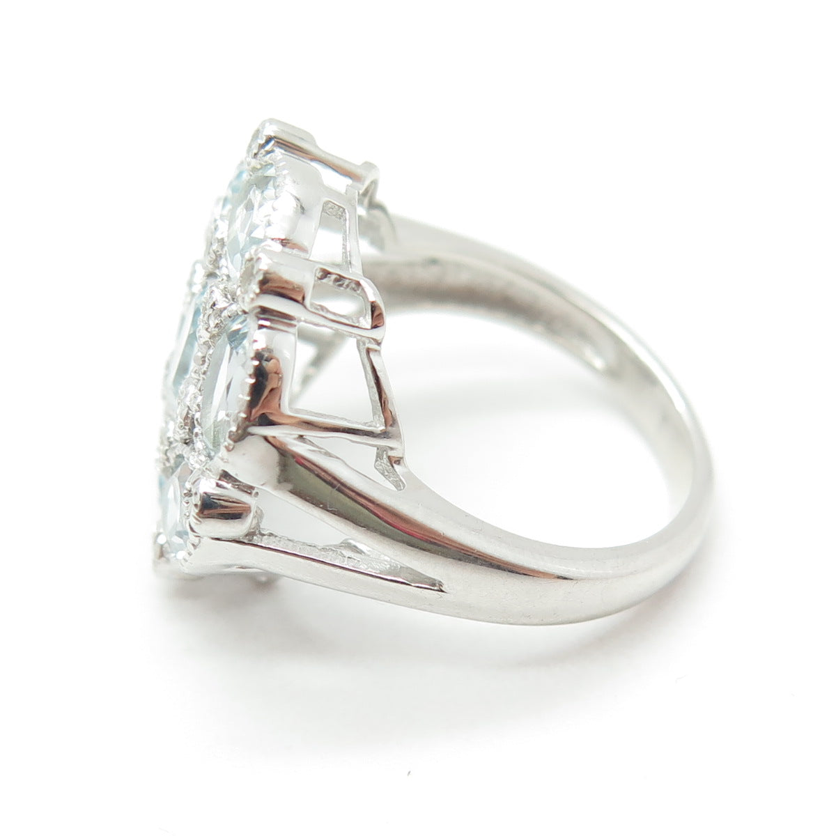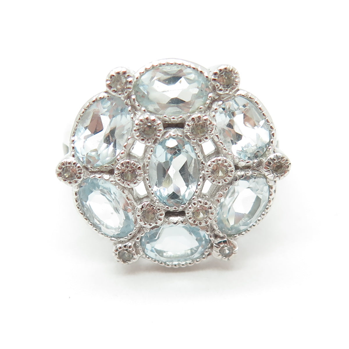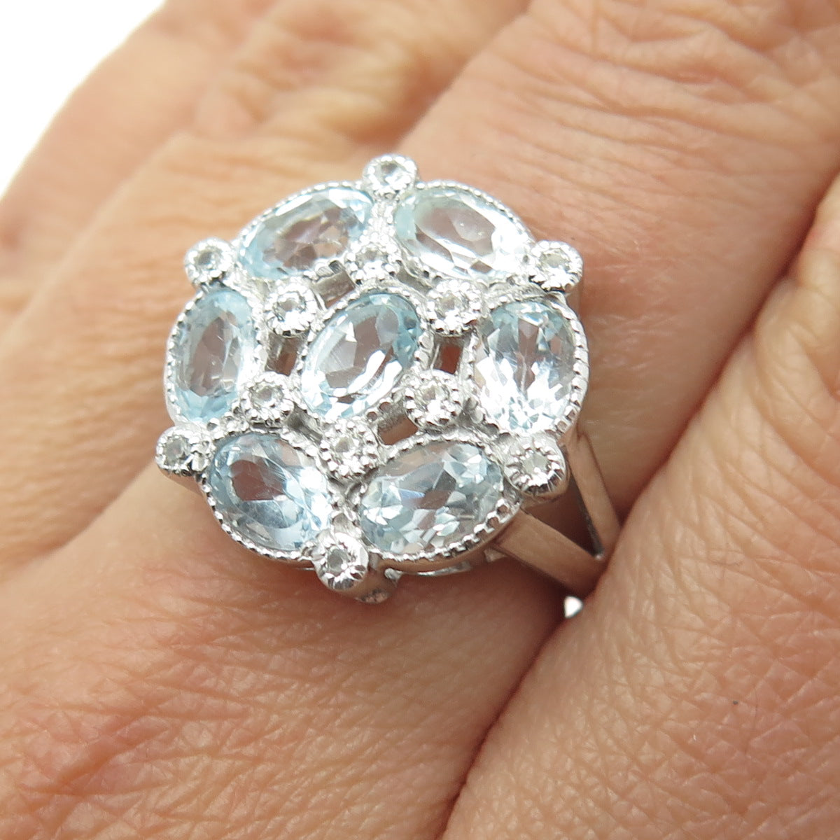 925 Sterling Silver Real Oval-Cut Blue & White Topaz Gemstone Ring Size 6.75