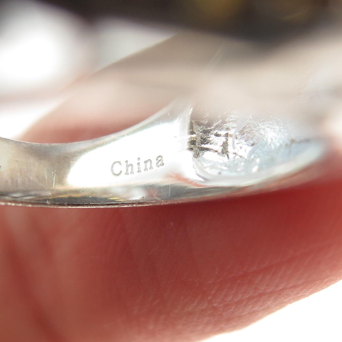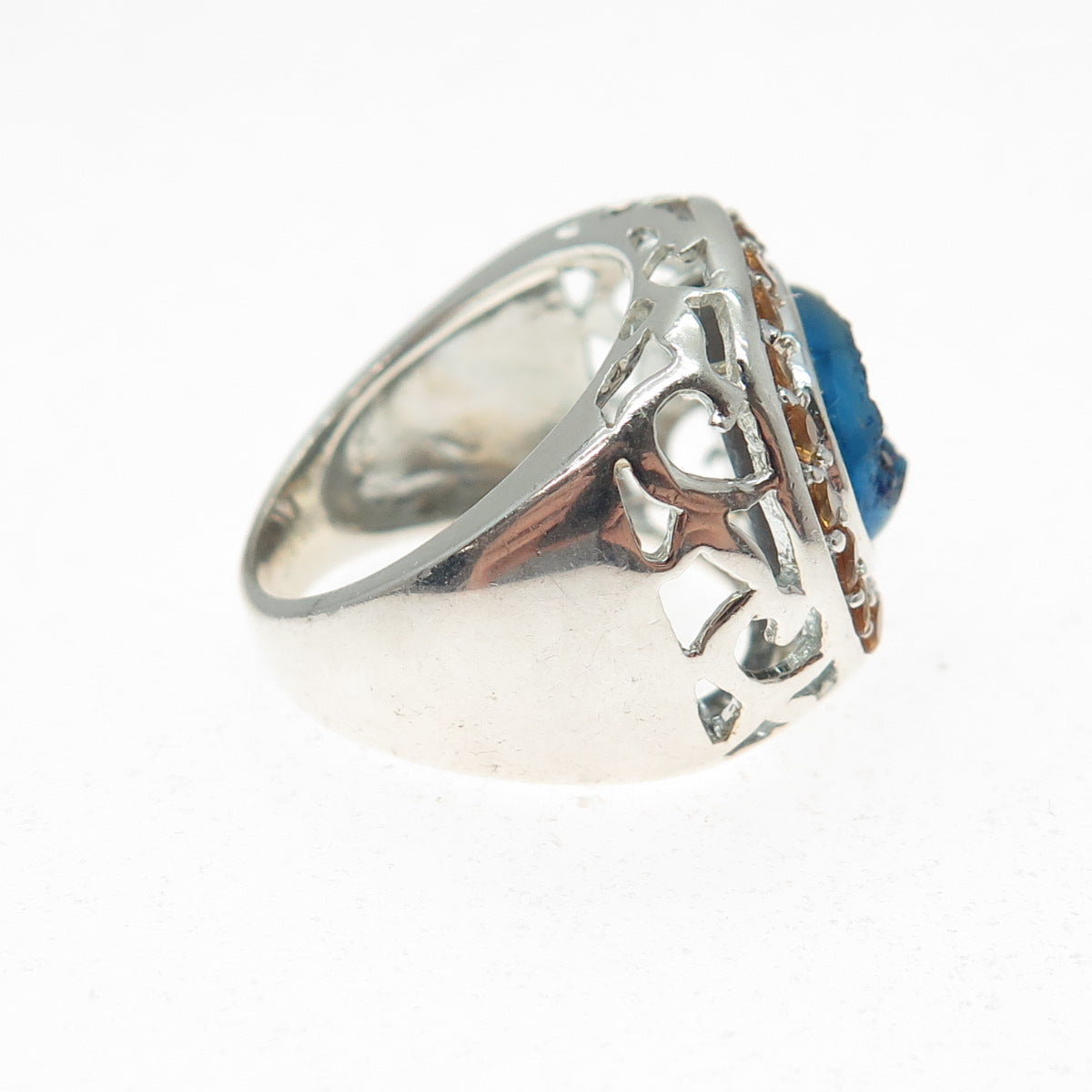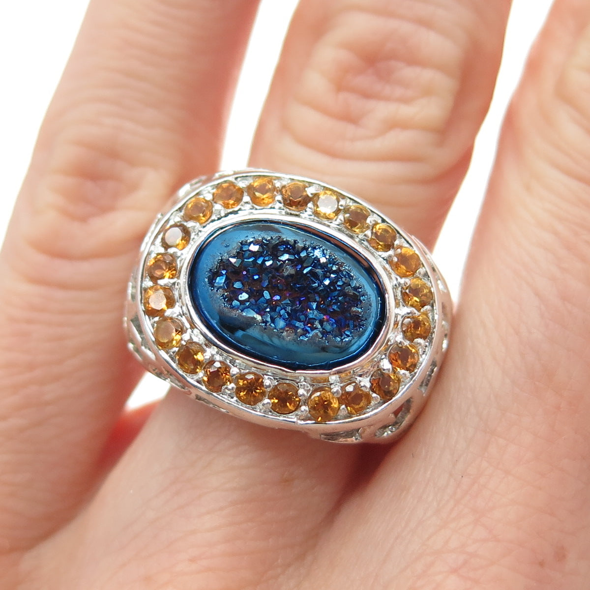 925 Sterling Silver Real Oval-Cut Druzy & Round-Cut Citrine Ring Size 5.25