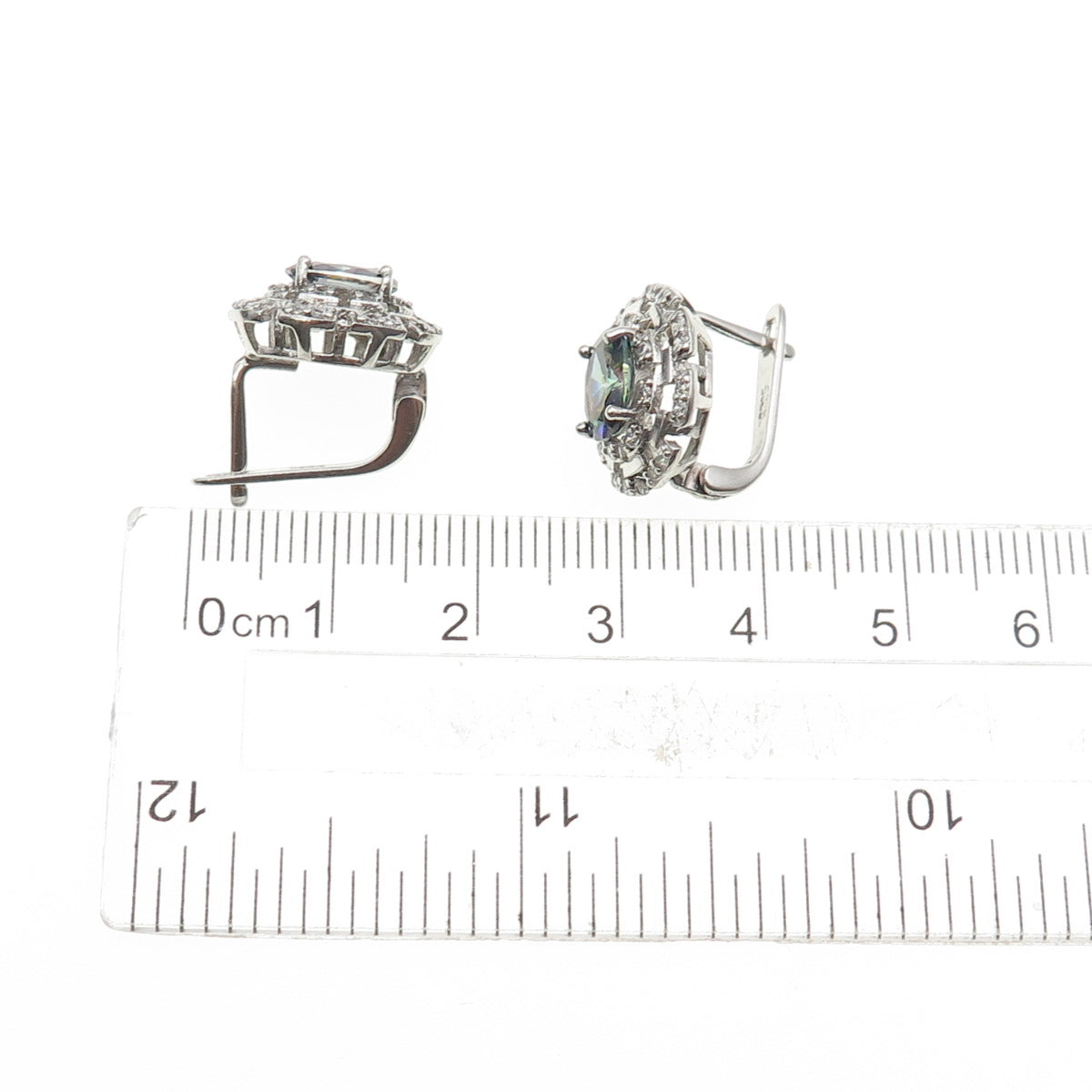 925 Sterling Silver Real Oval-Cut Mystic Quartz & Round-Cut C Z Earrings