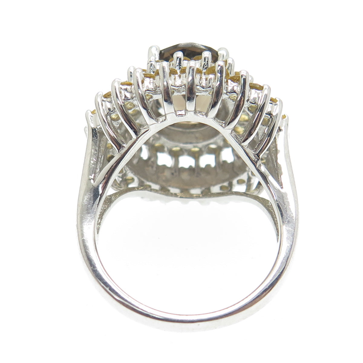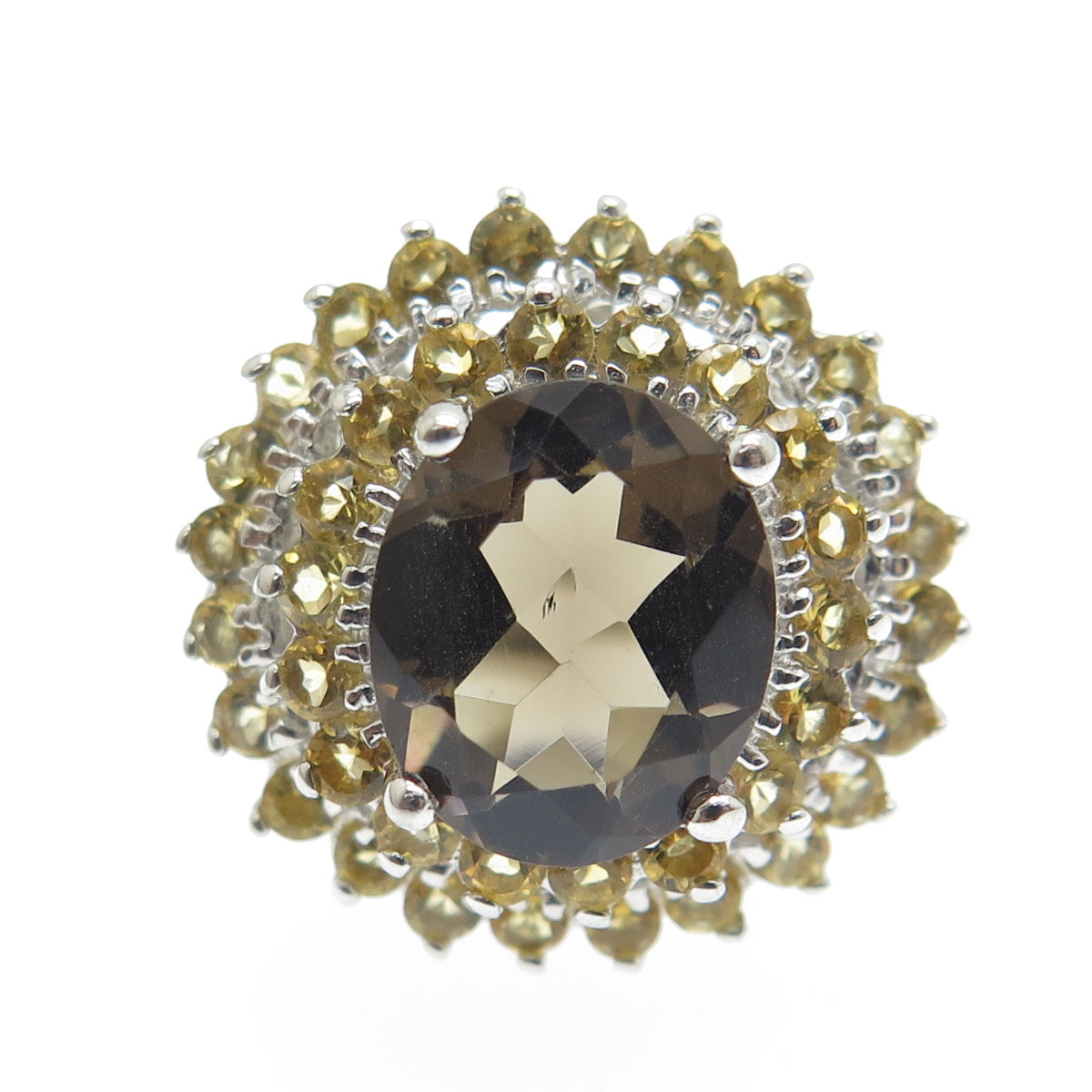 925 Sterling Silver Real Oval-Cut Smoky Quartz & Citrine Ring Size 7.5