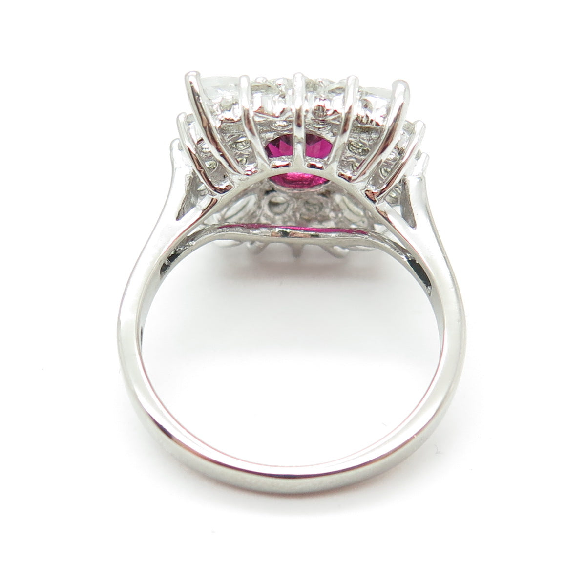 925 Sterling Silver Real Oval-Cut Tourmaline & White Topaz Ring Size 8.75