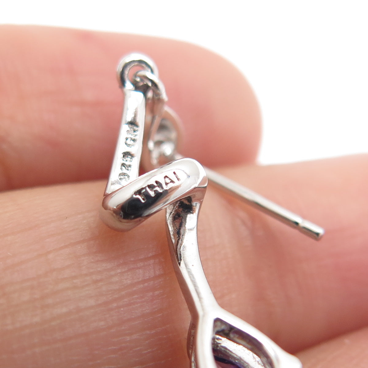 925 Sterling Silver Real Pear-Cut Amethyst Zig Zag Dangle Earrings