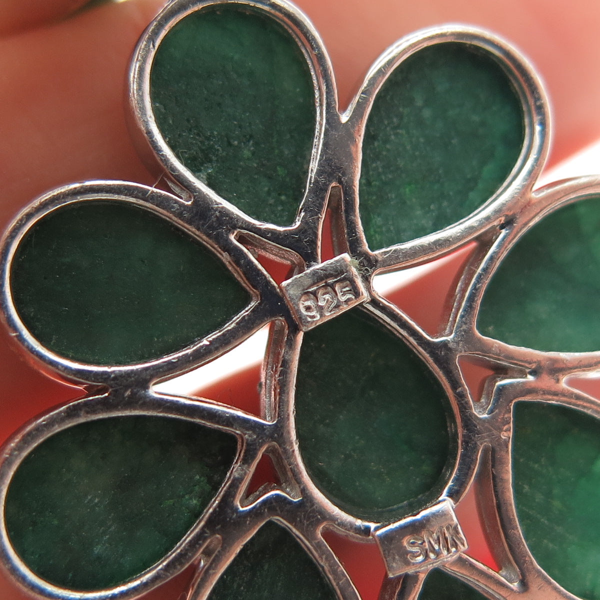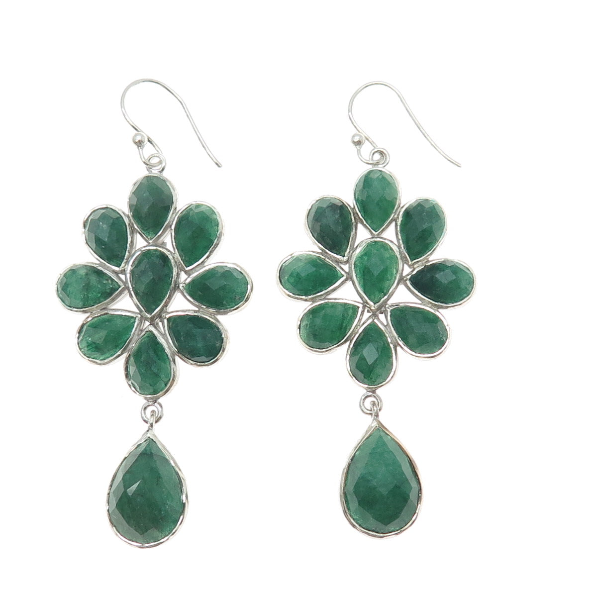 925 Sterling Silver Real Pear-Cut Emerald Flower Dangle Earrings
