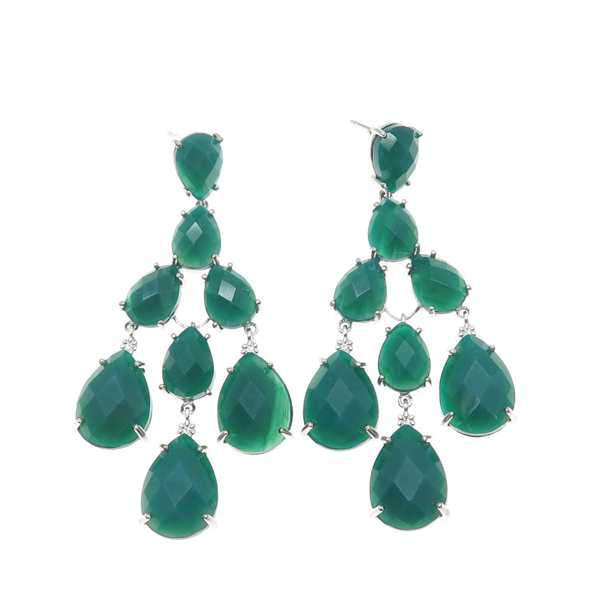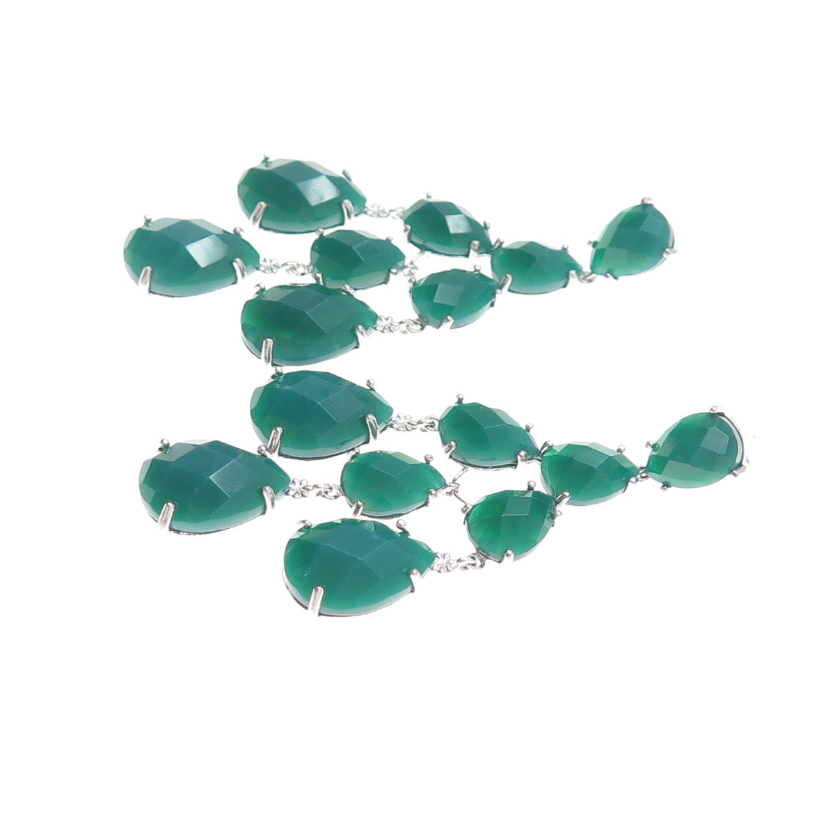925 Sterling Silver Real Pear-Cut Green Onyx Chandelier Dangle Earrings
