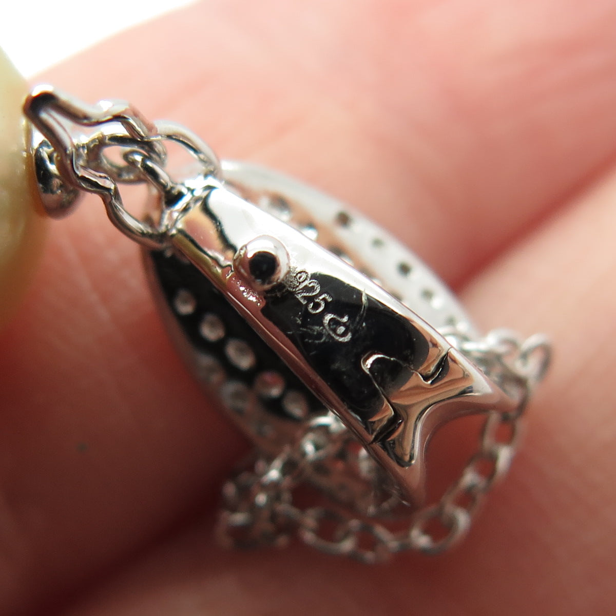 925 Sterling Silver Real Pearl & White Topaz Cable Chain Necklace 18"