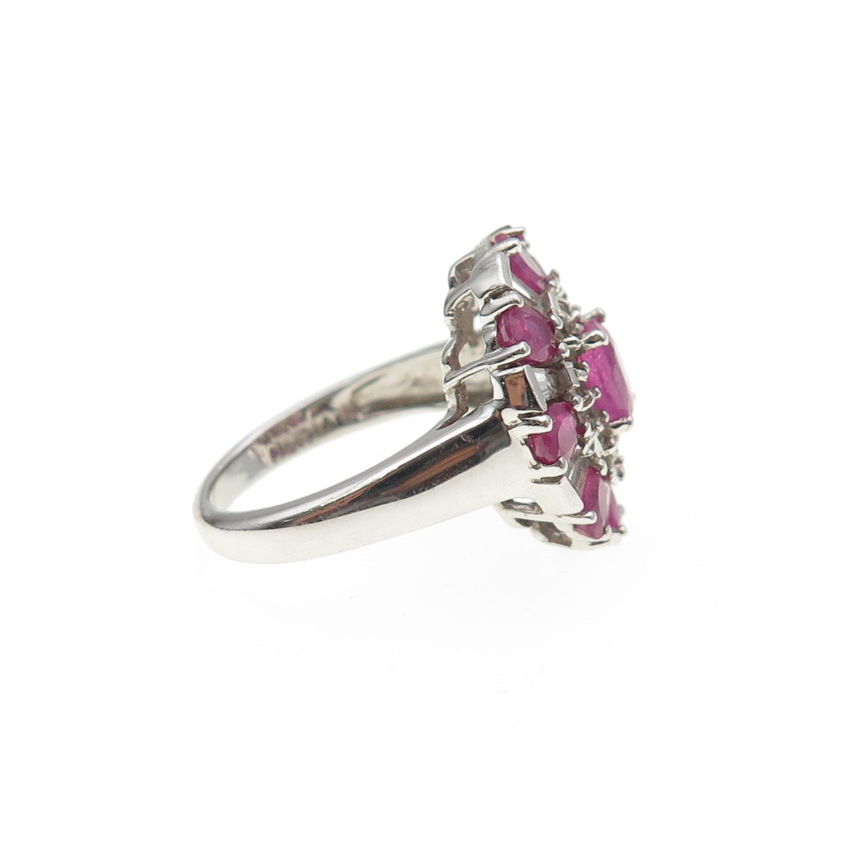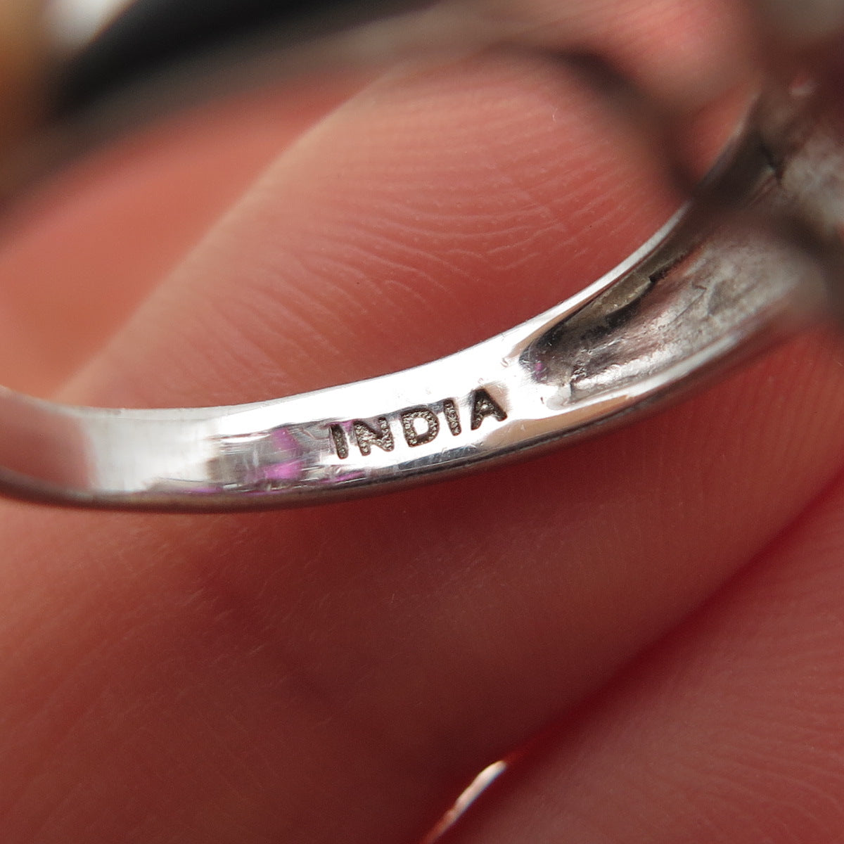 925 Sterling Silver Real Pink Sapphire & White Topaz Bohemian Ring Size 6
