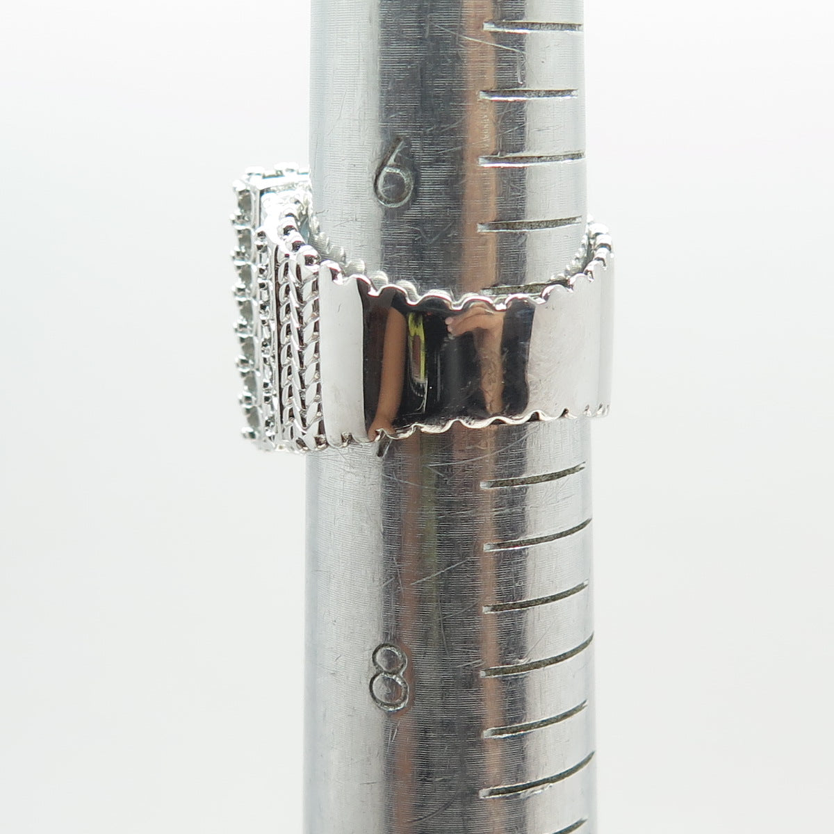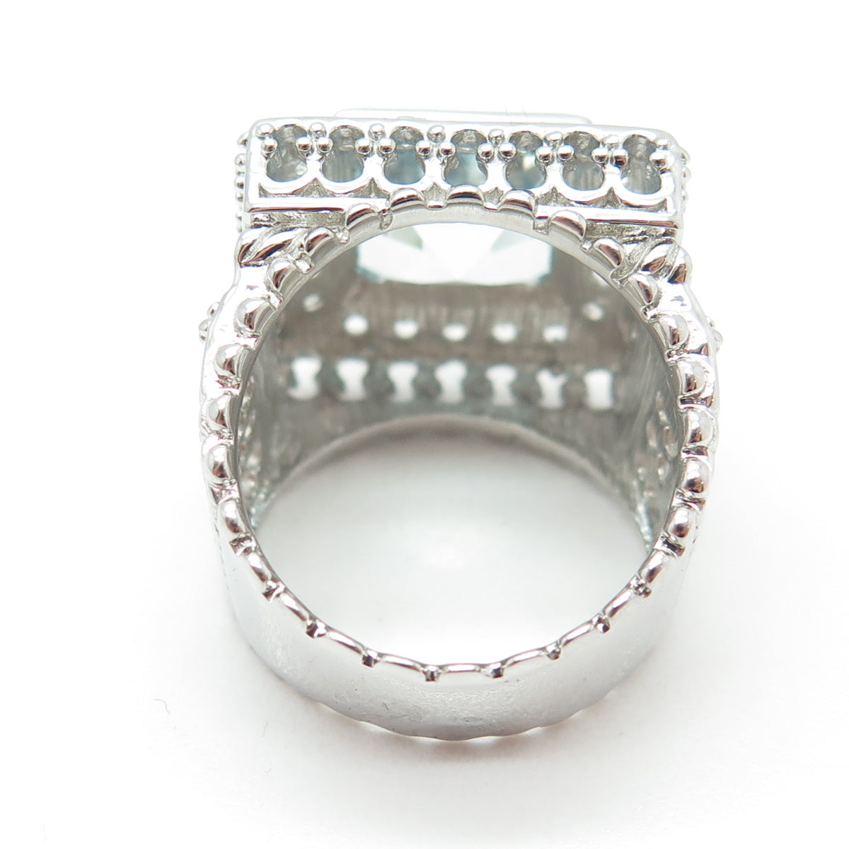 925 Sterling Silver Real Princess-Cut Blue & Round-Cut White Topaz Ring Size 7