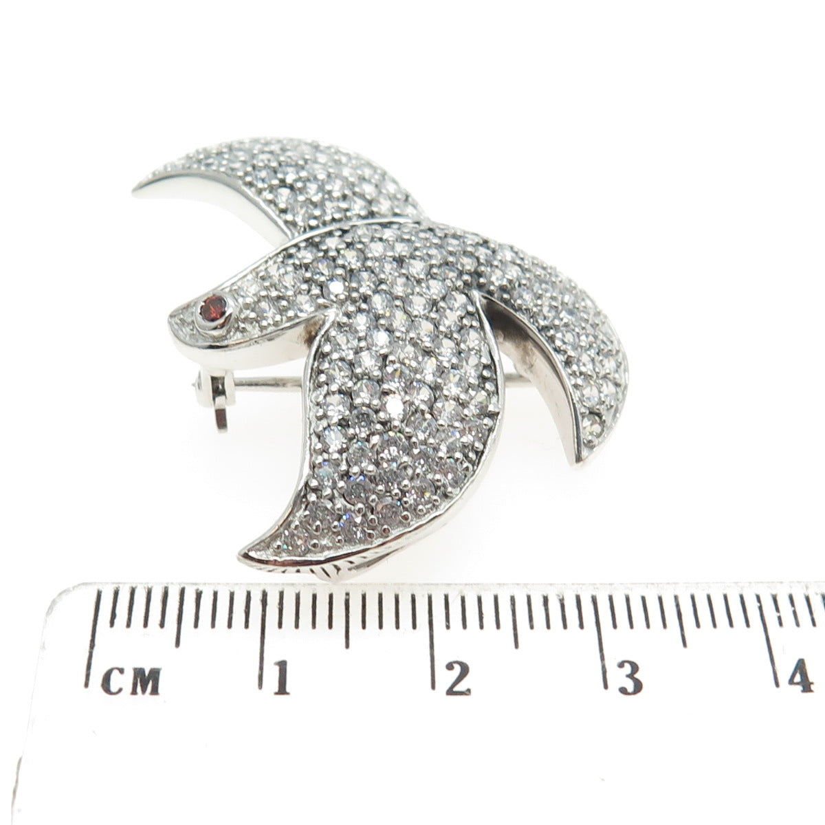 925 Sterling Silver Real Red Garnet Gemstone & C Z Dove of Peace Pin Brooch
