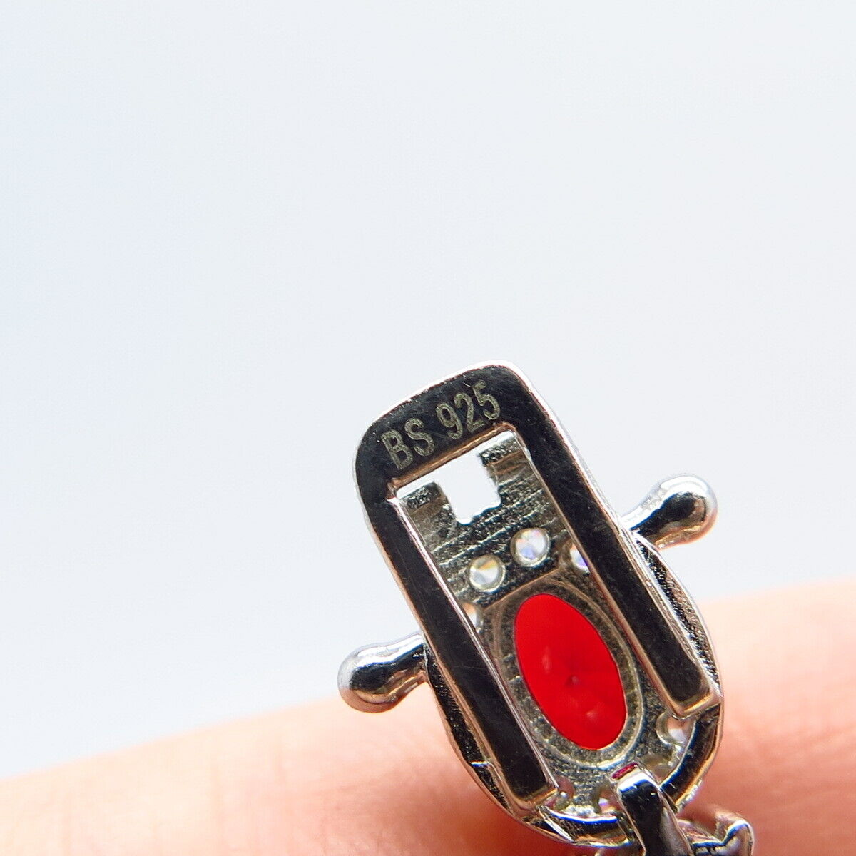 925 Sterling Silver Real Rhodolite Garnet Gem & C Z Tennis Link Bracelet 7.25"
